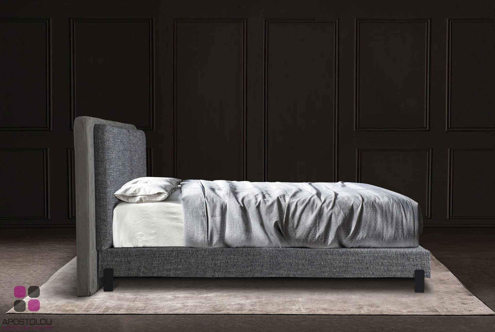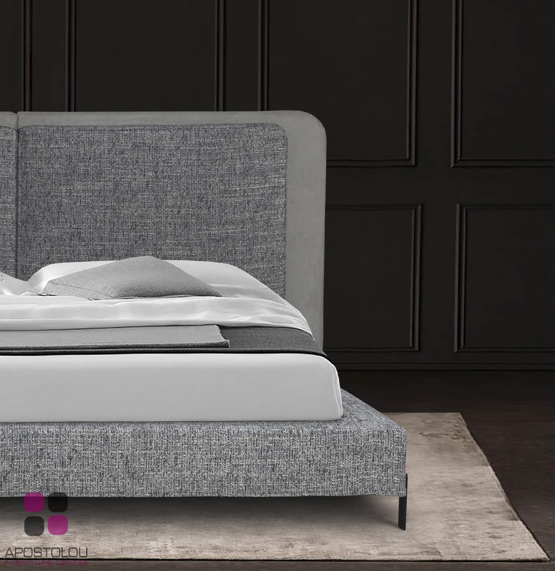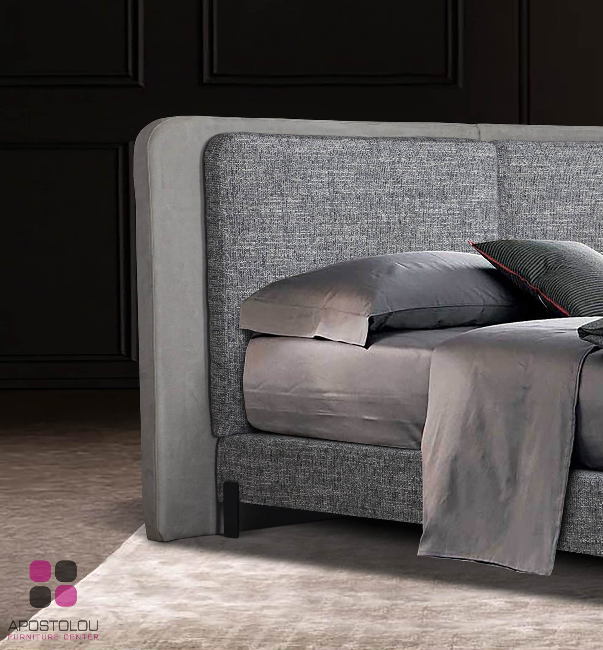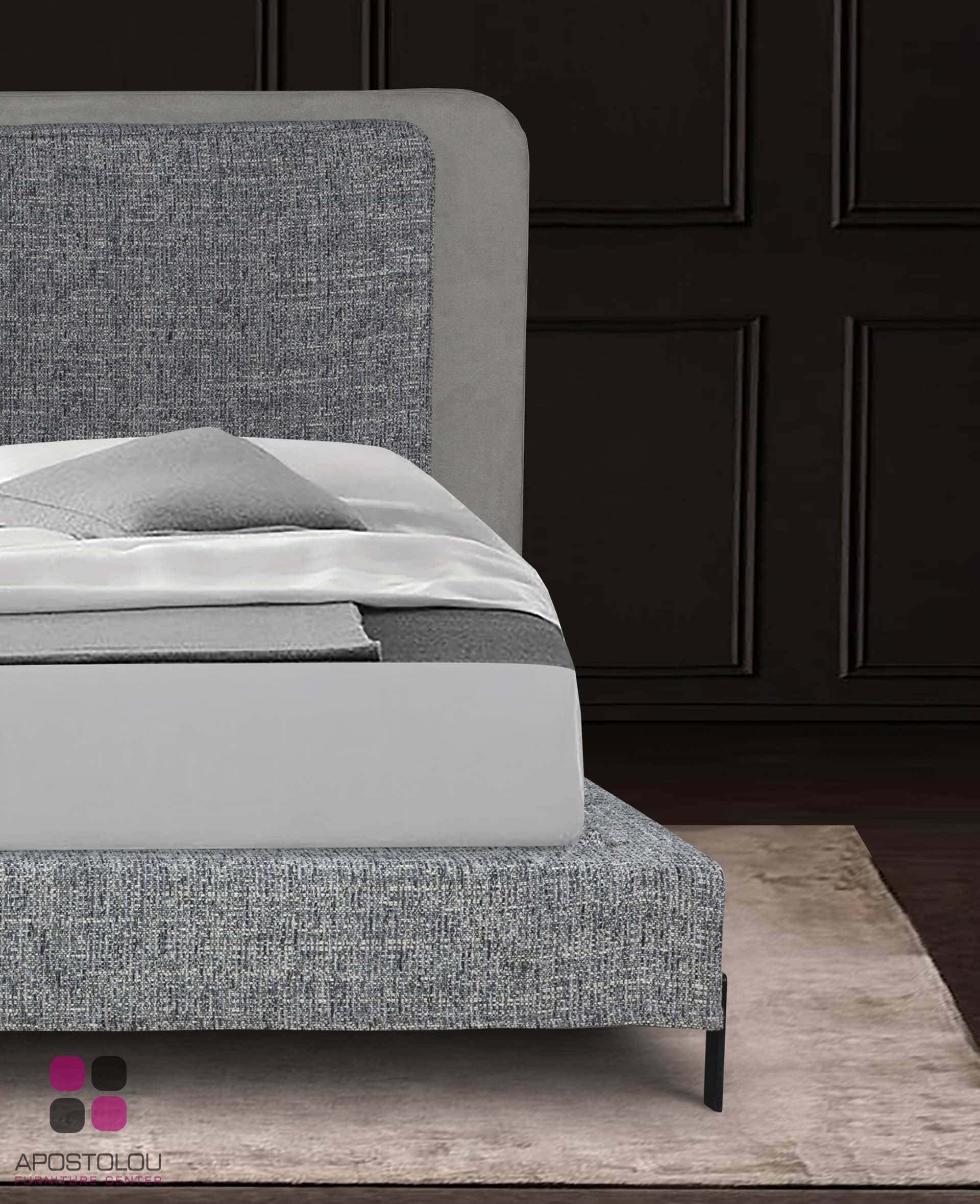 Ντυμένο κρεβάτι με μοντέρνο ύφος υψηλής αισθητικής με ψηλό και επιβλητικό κεφαλάρι του με μαξιλάρες στο προσκέφαλο. Παράγετε σε πολλές διαστάσεις και μεγάλη ποικιλία αδιάβροχων και easy-clean υφασμάτων.