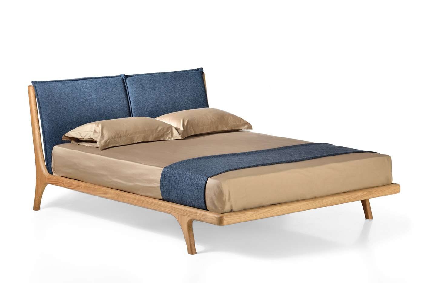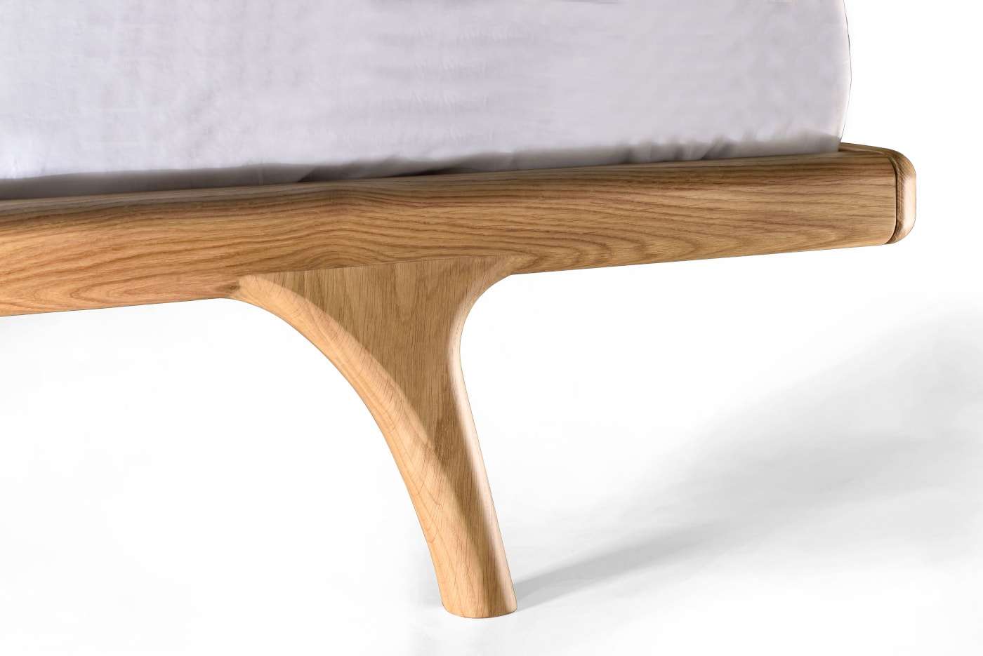 Κρεβάτι με σκελετό από μασίφ ξύλο με καμπύλες άκρες και επένδυση σε δύο καμπύλα κομμάτια.