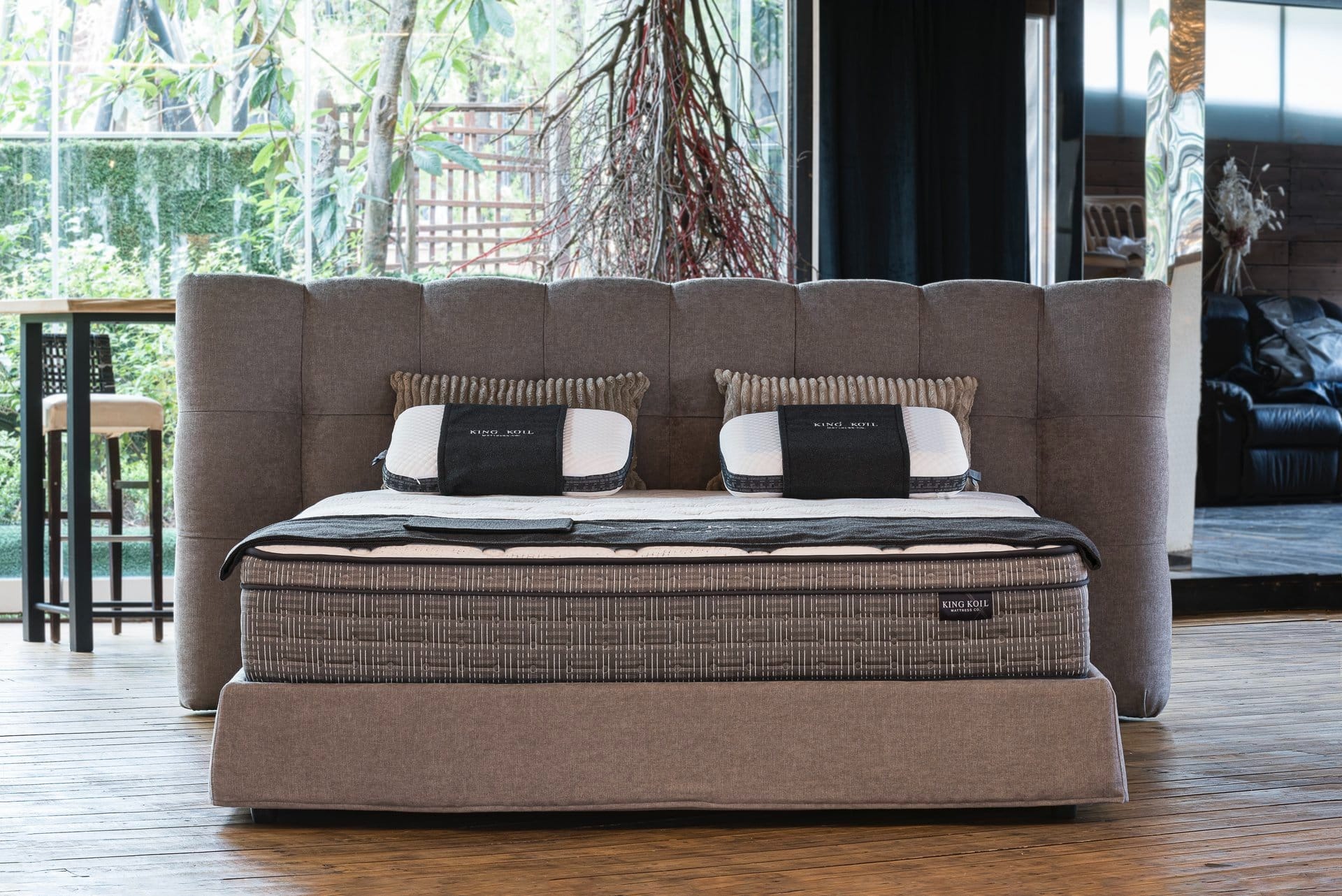 Ντυμένο κρεβάτι με μοντέρνο ύφος υψηλής αισθητικής με ψηλό και επιβλητικό κεφαλάρι του με χειροποίητο καπιτονέ ράψιμο. Παράγετε σε πολλές διαστάσεις και μεγάλη ποικιλία αδιάβροχων και easy-clean υφασμάτων.