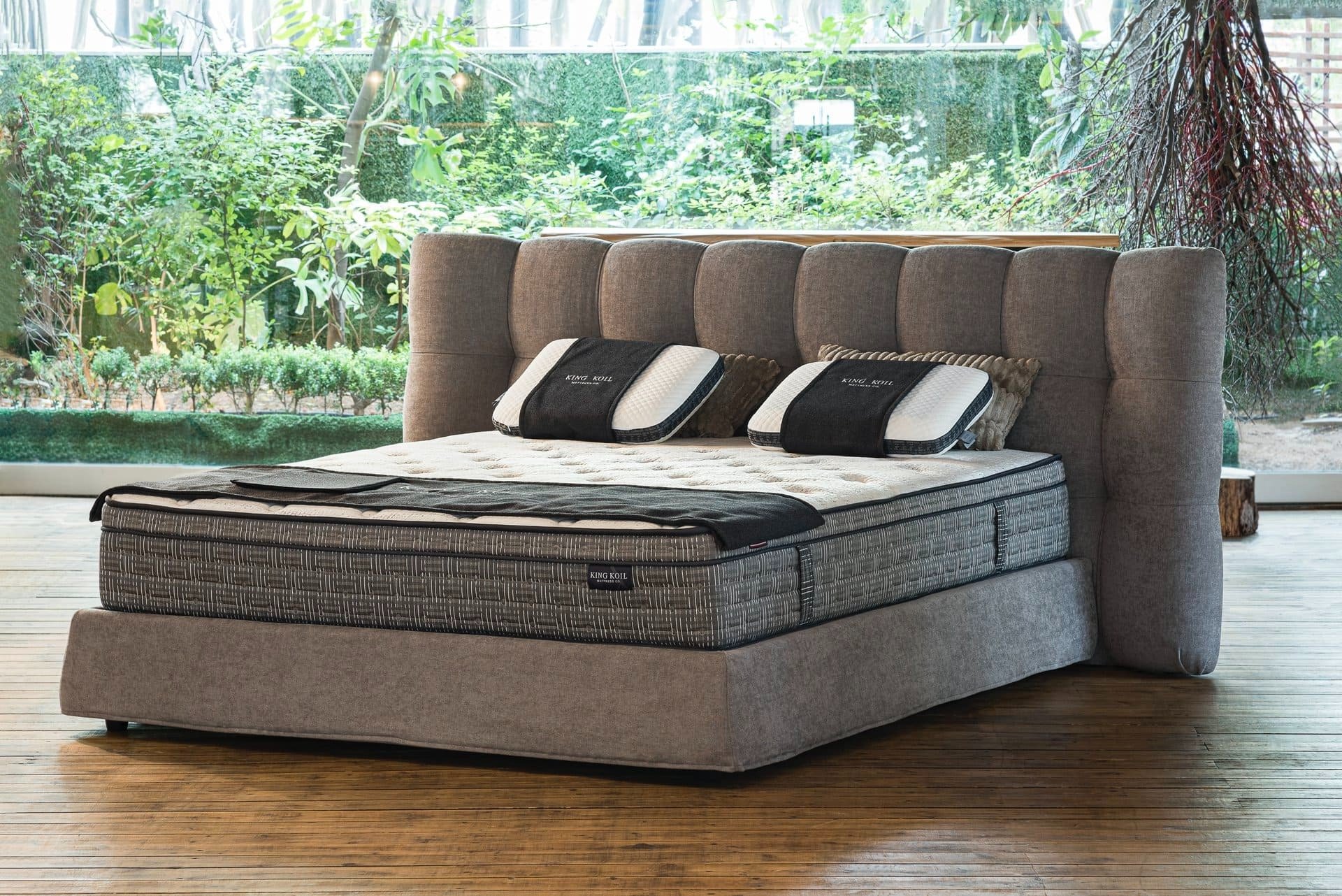 Ντυμένο κρεβάτι με μοντέρνο ύφος υψηλής αισθητικής με ψηλό και επιβλητικό κεφαλάρι του με χειροποίητο καπιτονέ ράψιμο. Παράγετε σε πολλές διαστάσεις και μεγάλη ποικιλία αδιάβροχων και easy-clean υφασμάτων.