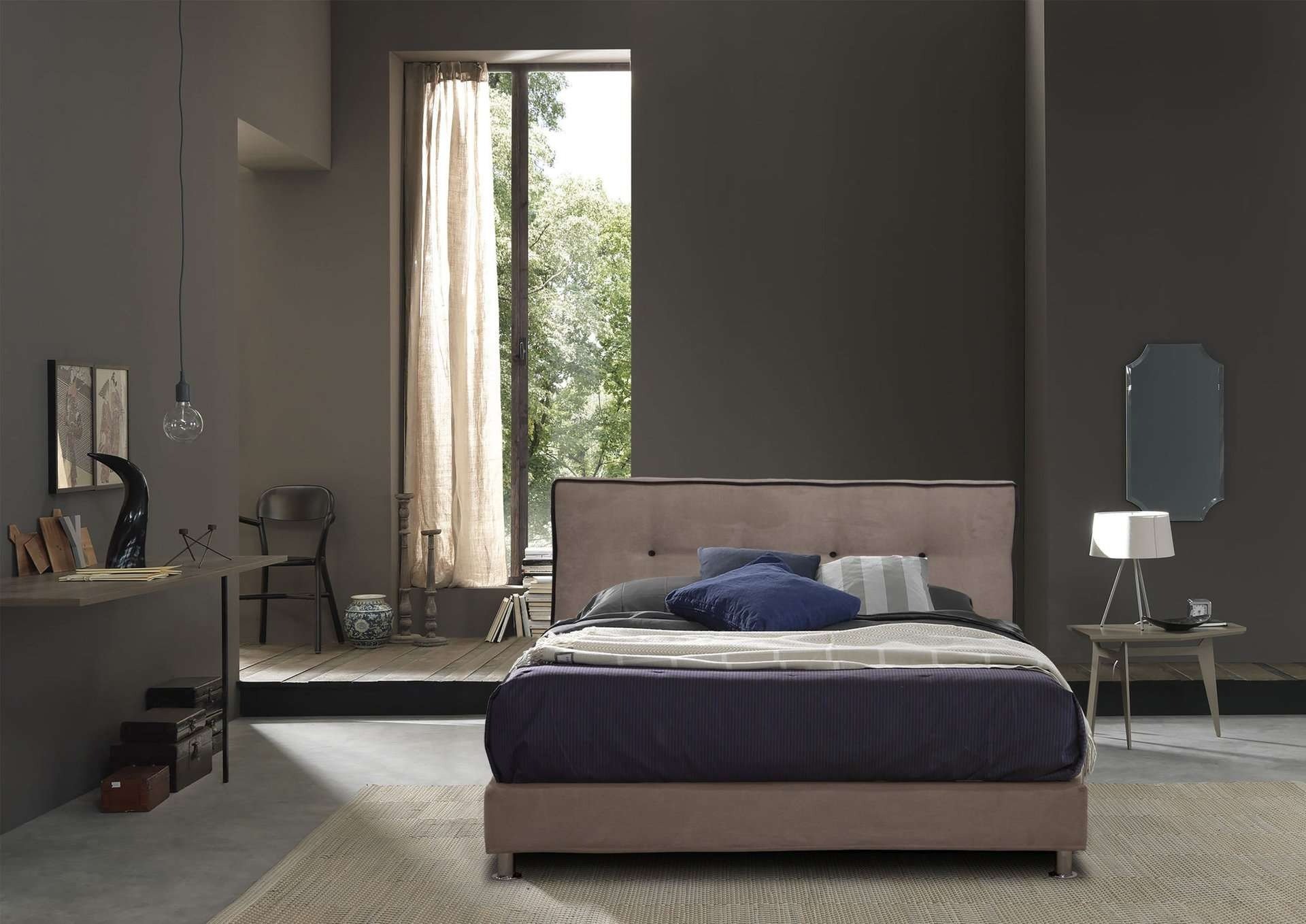 Ντυμένο κρεβάτι με μοντέρνο ύφος υψηλής αισθητικής με ψηλό και επιβλητικό κεφαλάρι του με χειροποίητο ράψιμο. Παράγετε σε πολλές διαστάσεις και μεγάλη ποικιλία αδιάβροχων και easy-clean υφασμάτων.