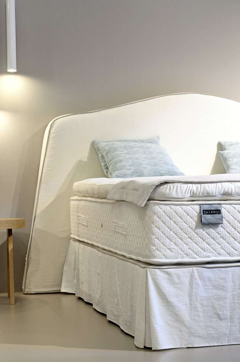 Ντυμένο κρεβάτι με μοντέρνο ύφος υψηλής αισθητικής με ψηλό και επιβλητικό κεφαλάρι με χειροποίητο ράψιμο φορετό. Παράγετε σε πολλές διαστάσεις και μεγάλη ποικιλία αδιάβροχων και easy-clean υφασμάτων.