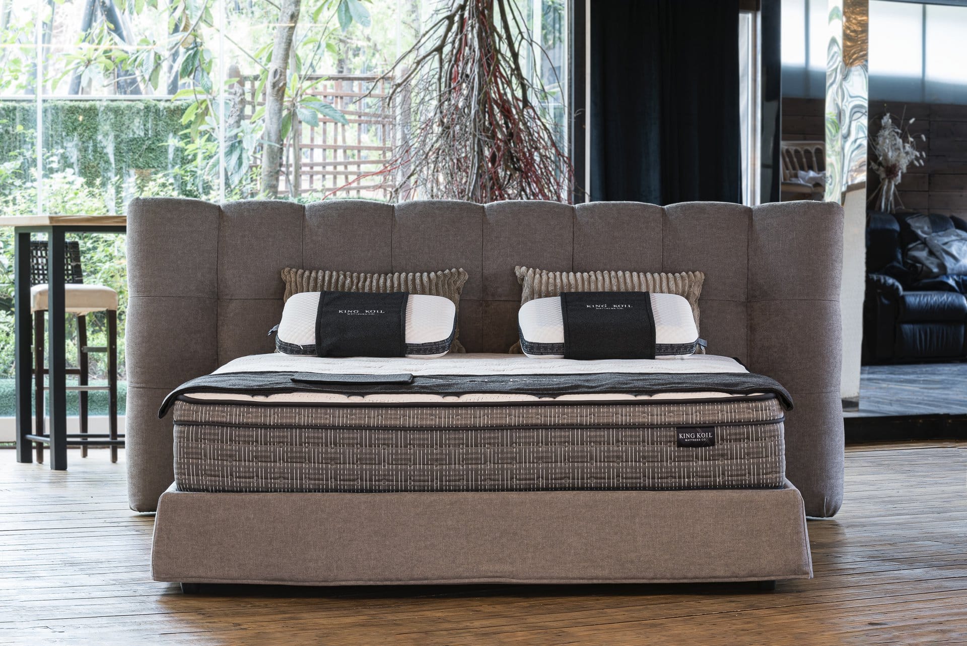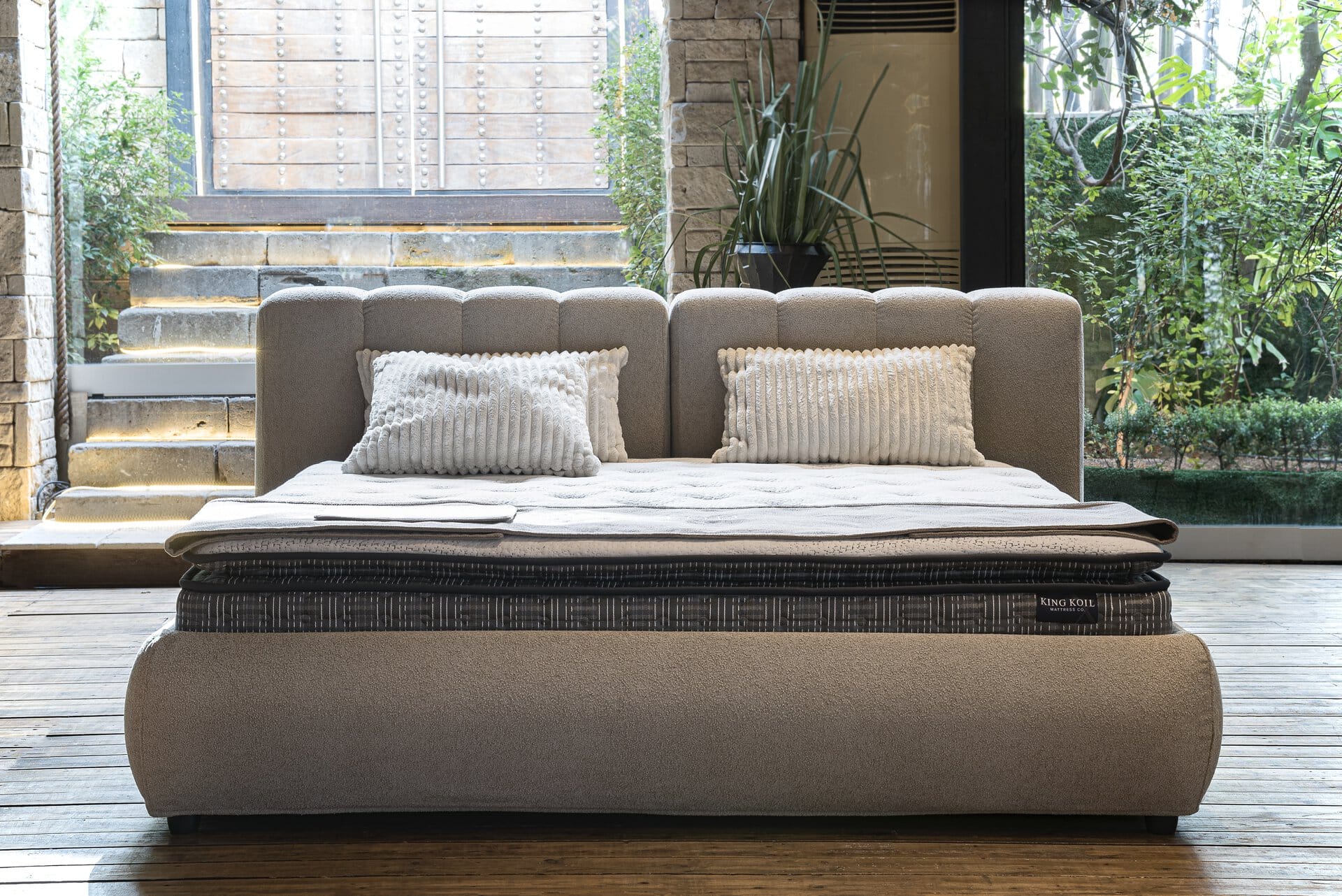 Ντυμένο κρεβάτι με μοντέρνο ύφος υψηλής αισθητικής, ψηλό και επιβλητικό κεφαλάρι με χειροποίητο ράψιμο. Παράγετε σε πολλές διαστάσεις και μεγάλη ποικιλία αδιάβροχων και easy-clean υφασμάτων.