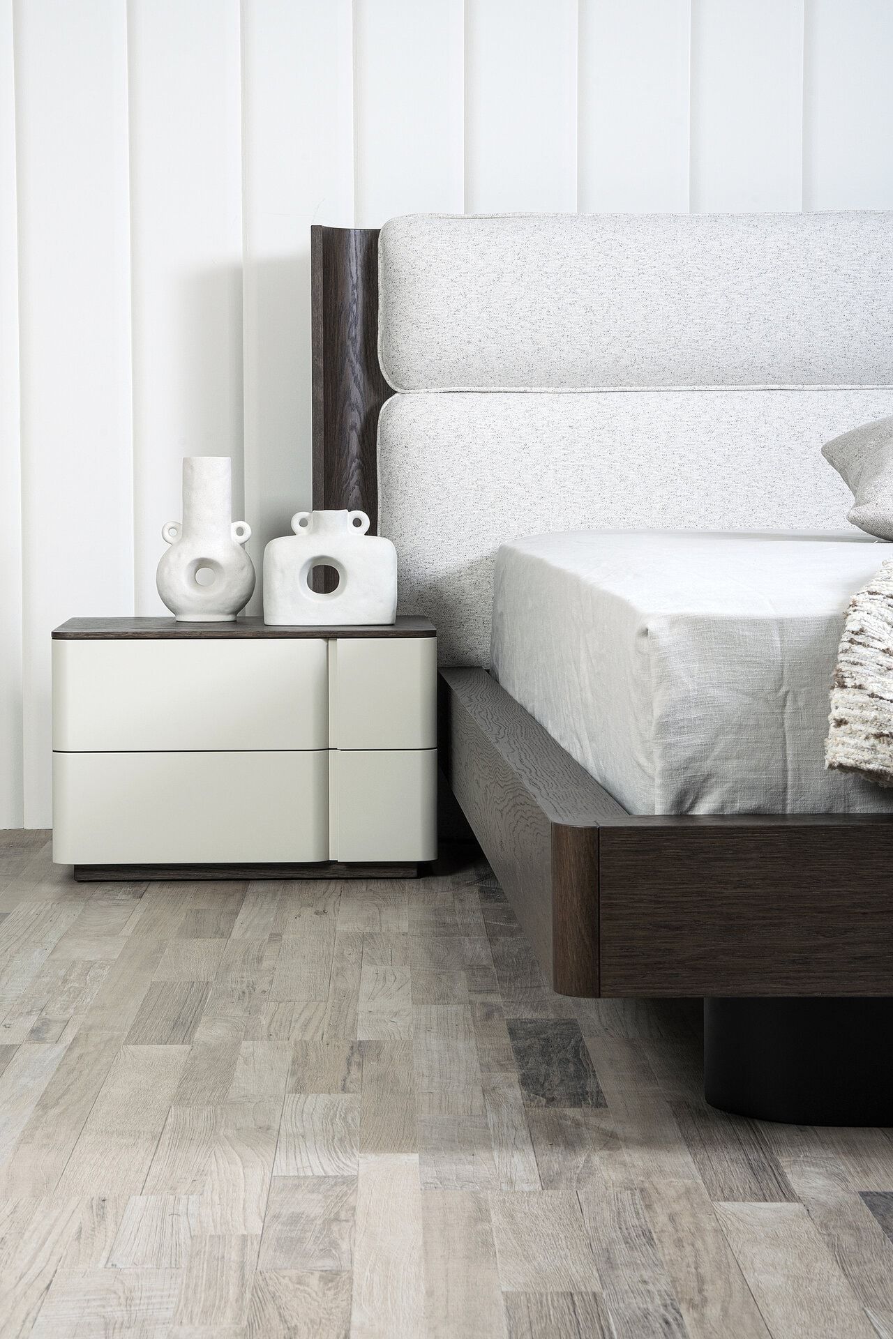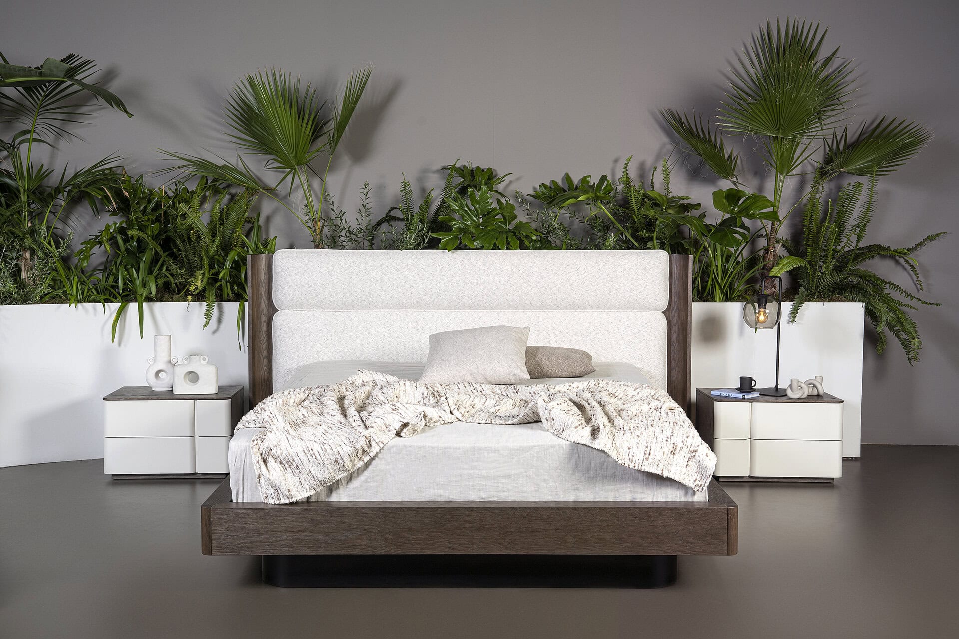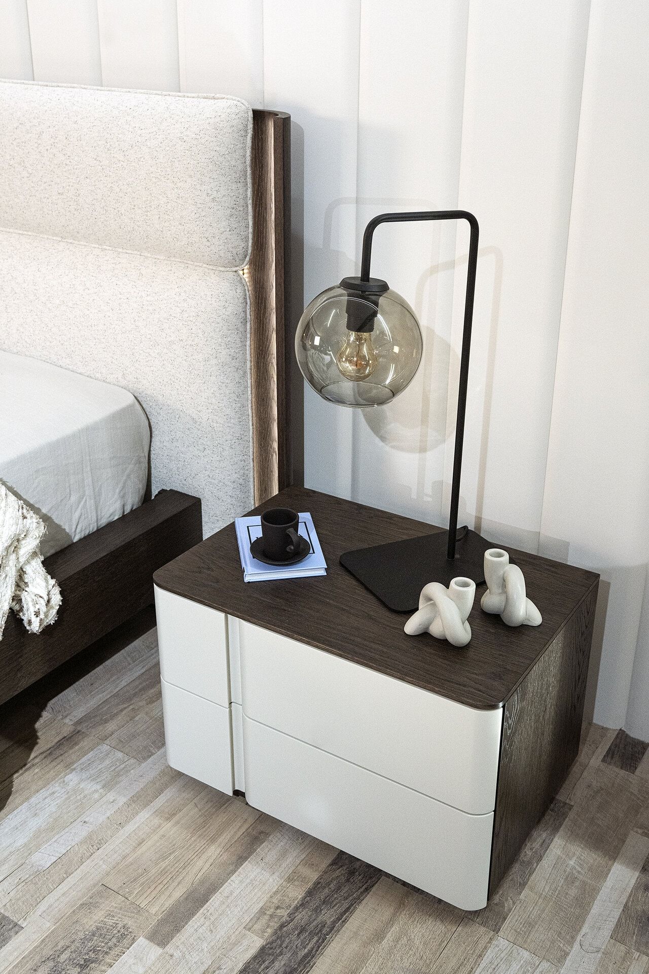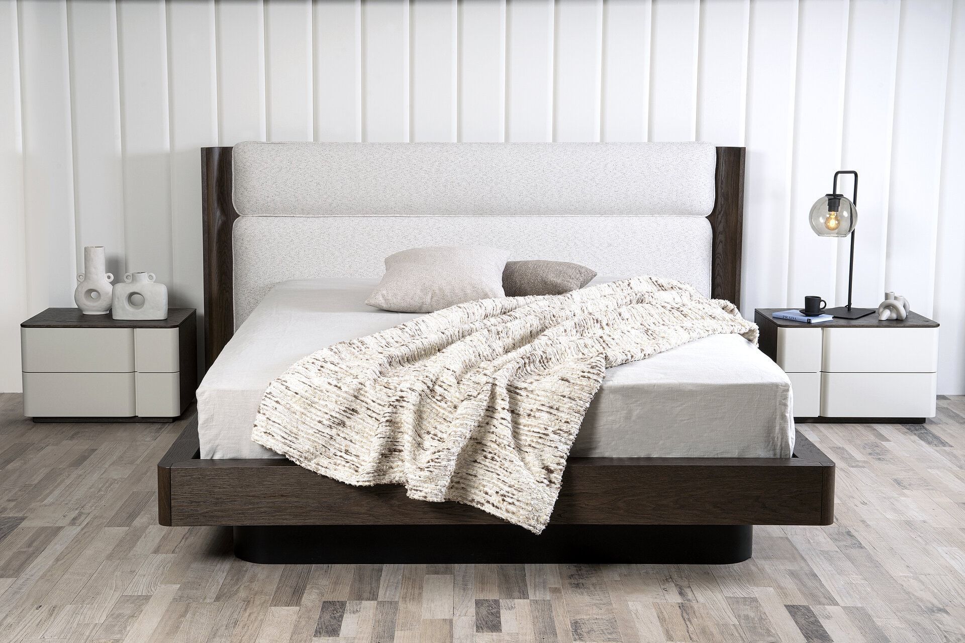 Κρεβάτι Twin. Eλληνικής Κατασκευής. Υλικά: Ύφασμα easy clean σε συνδuασμό με ξύλο δρυς. Κρεβάτι: 178cm x 220cm x 108h (κεφαλάρι 220cm) Για διάσταση στρώματος: 160cm x 200cm Δυνατότητα αλλαγών. Δεν περιλαμβάνονται τα κομοδίνα της φωτογραφίας και ο φωτισμός.