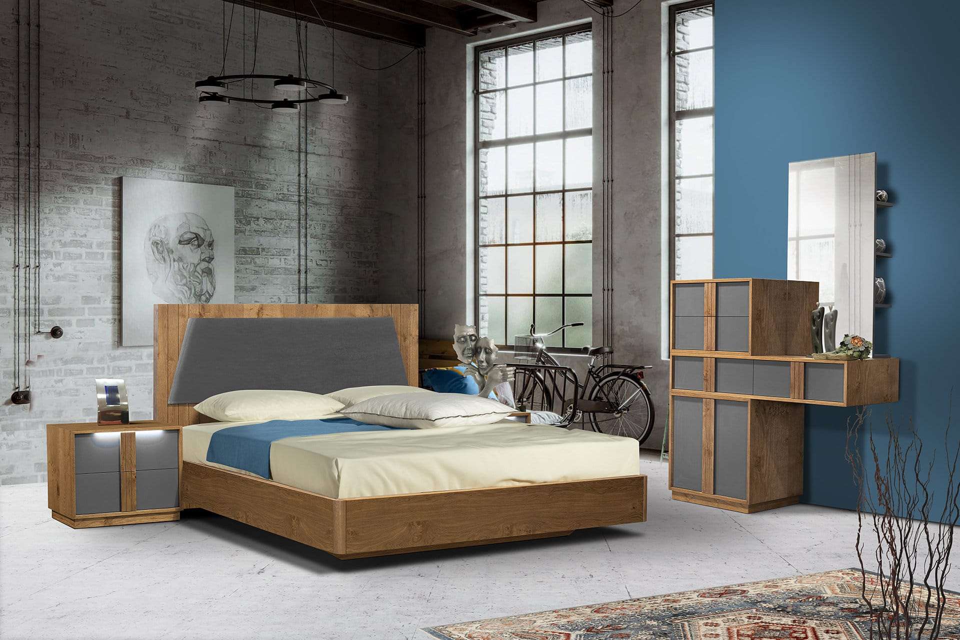 Ένα μοντέλο κατασκευασμένο από ξύλο ρουστίκ και σε συνδυασμό με λεπτομέρειες από λάκα μας εντυπωσιάζει τόσο αισθητικά όσο και λειτουργικά με την προσθήκη ντύσιμο στο κεφαλάρι.