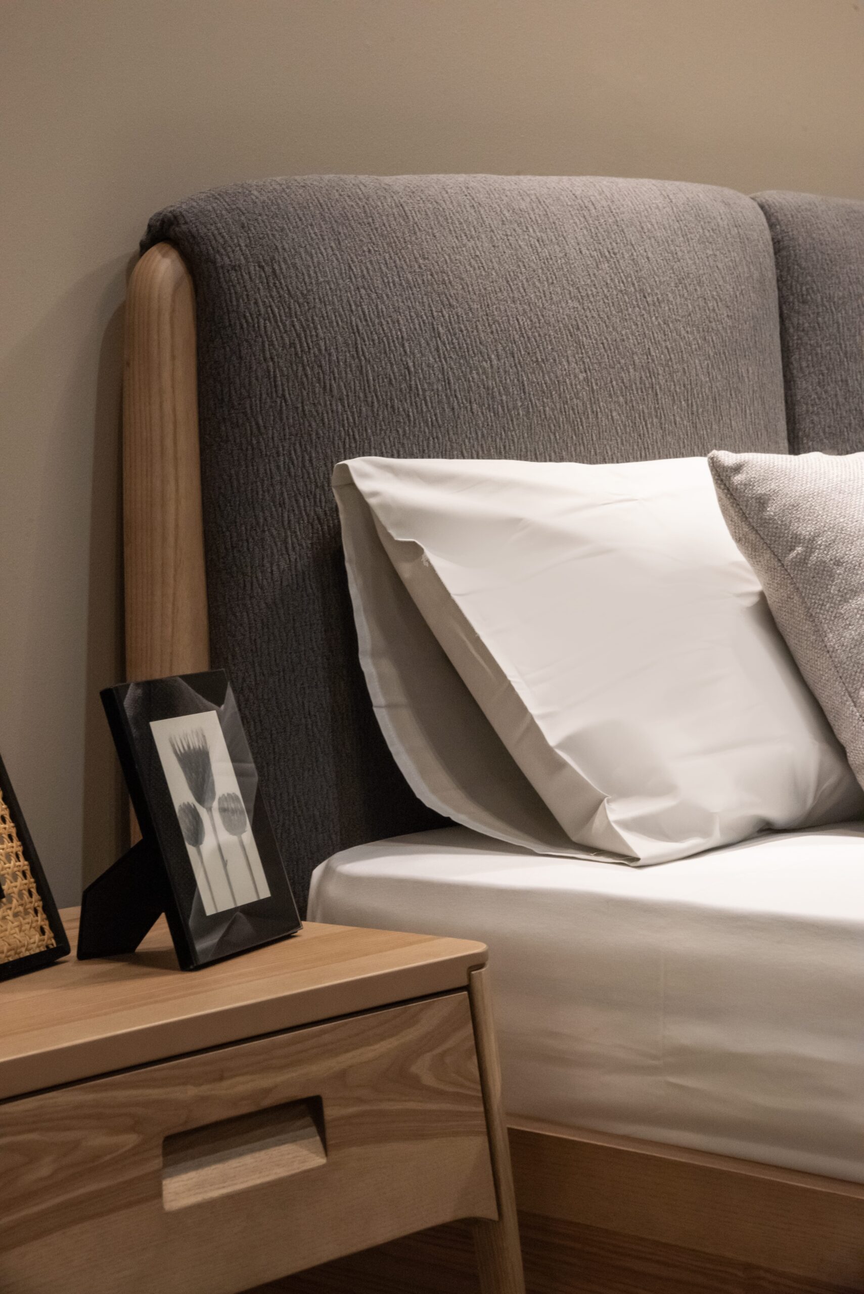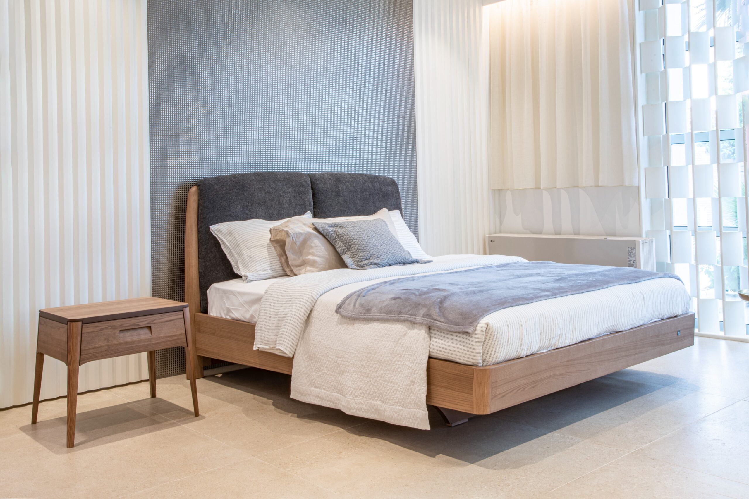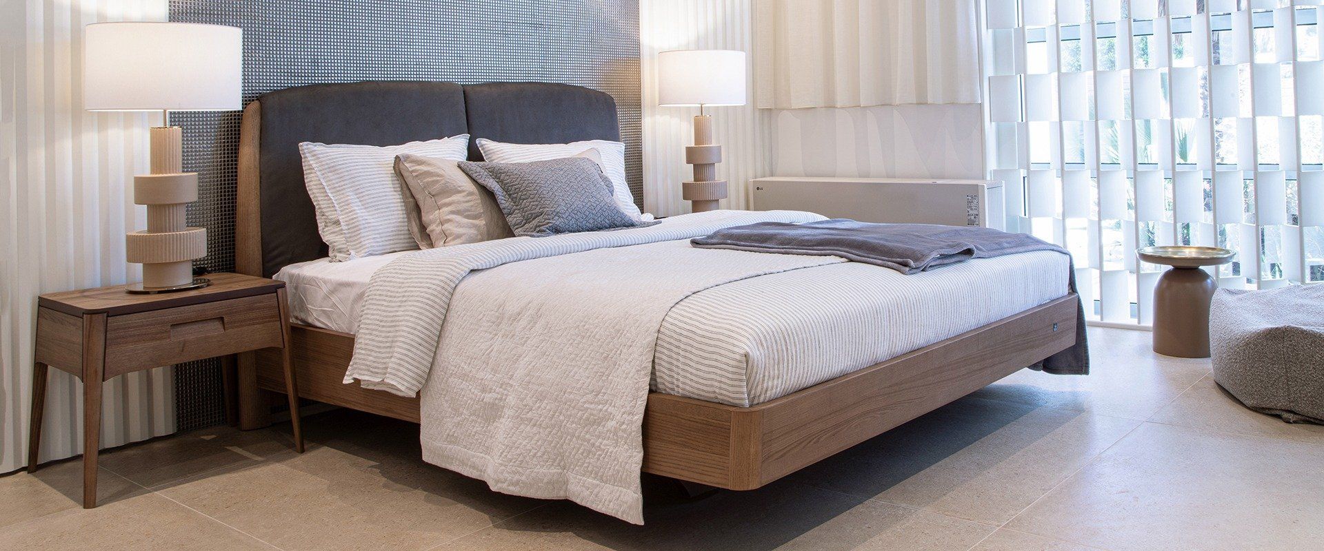 Η Λαΐς συνδυάζει λιτές και minimal γραμμές μασίφ ξύλου και φυσικού καπλαμά ελιάς.