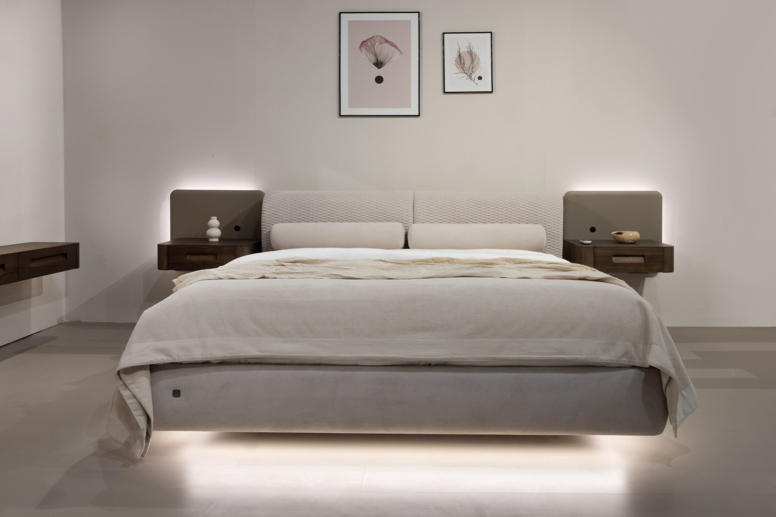 Το κρεβάτι και τα δύο κομοδίνα.