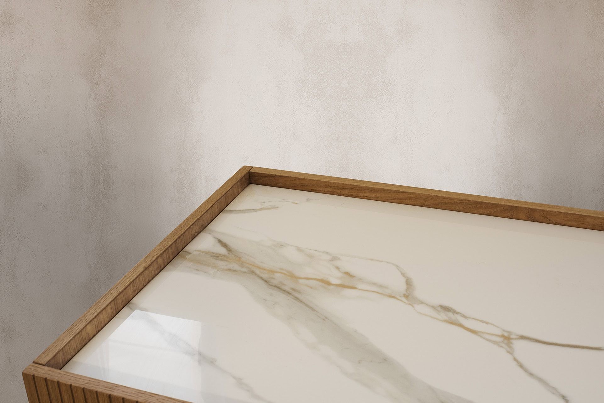 Μπουφές Μ4 σε δρυ ρουστίκ με τεχνοτροπία. Ιδιαίτερος σχεδιασμός με μεγάλους αποθηκευτικούς χώρους. Παράγεται σε επιθυμητές διαστάσεις και χρώματα.