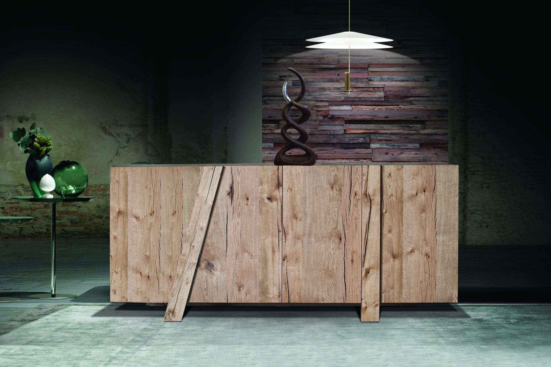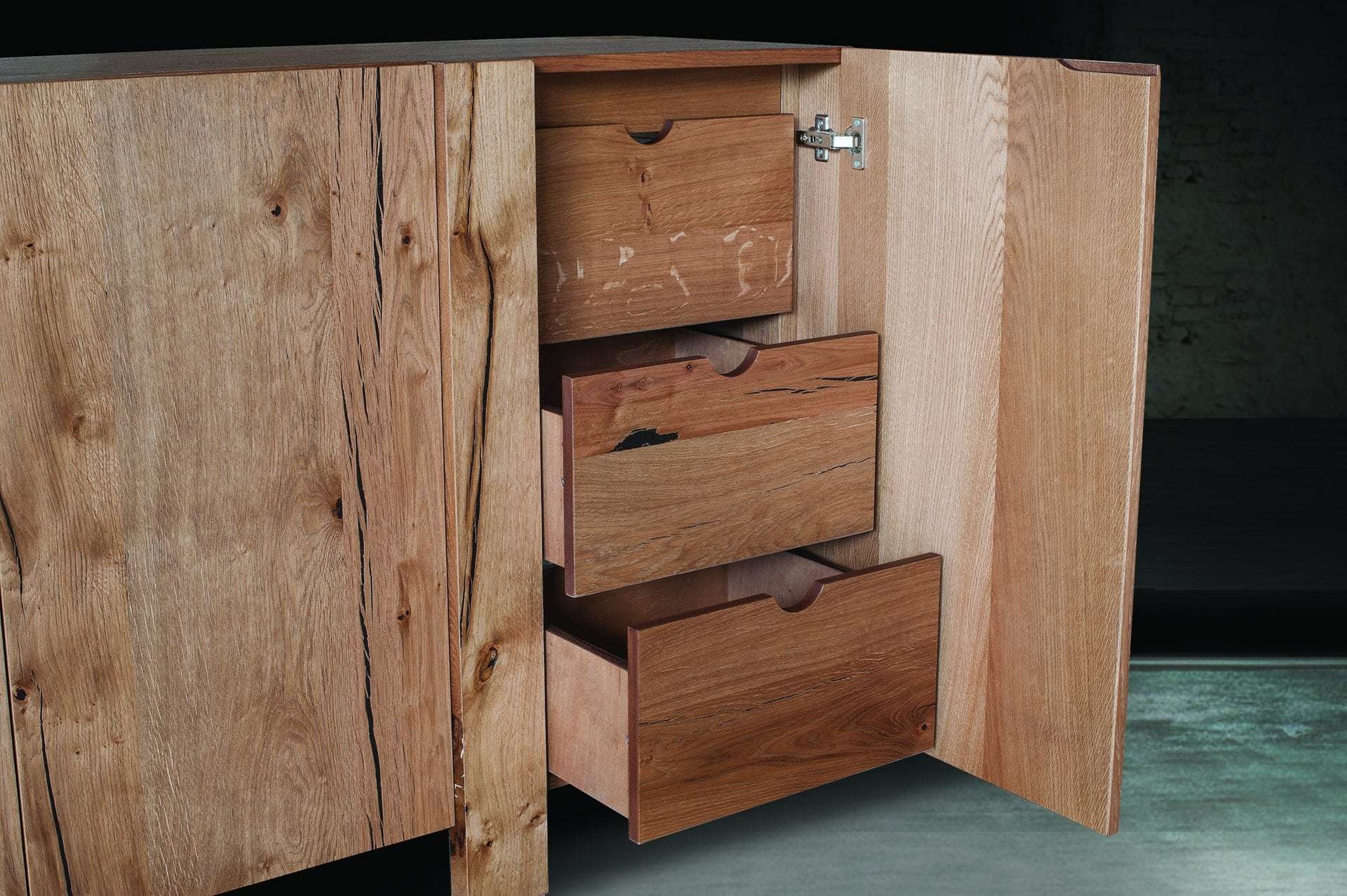 Μπουφές Μ4 σε δρυ ρουστίκ με τεχνοτροπία. Ιδιαίτερος σχεδιασμός με μεγάλους αποθηκευτικούς χώρους. Παράγεται σε επιθυμητές διαστάσεις και χρώματα.
