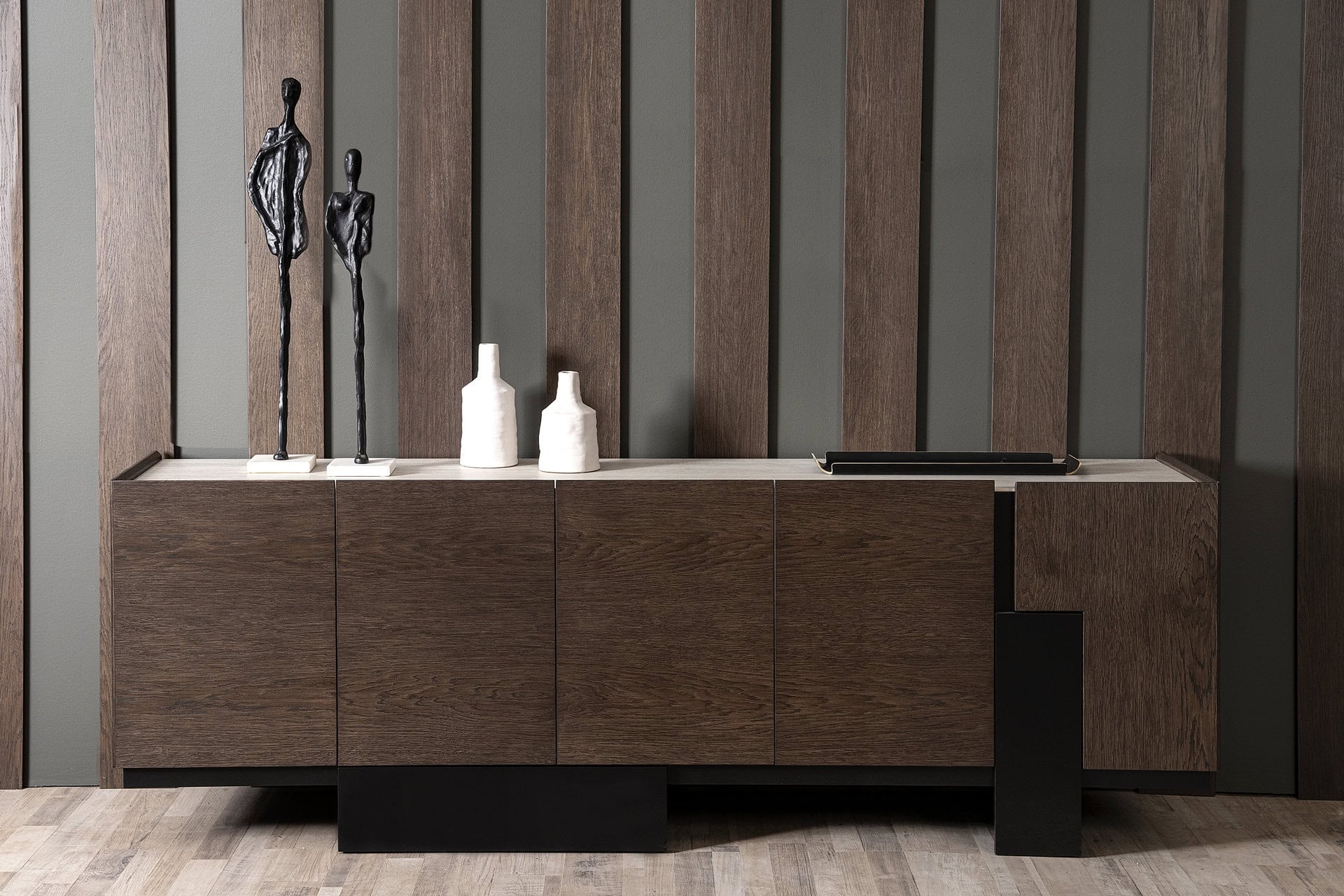 Μοντέρνος σχεδιασμός στο νέο μπουφέ Solid, με κύριο χαρακτηριστικό η κεραμική επιφάνεια. Ένα μοντέλο με σύγχρονο ύφος κατασκευασμένο από κεραμικό, ξύλο δρυ και λάκα γκοφρέ.