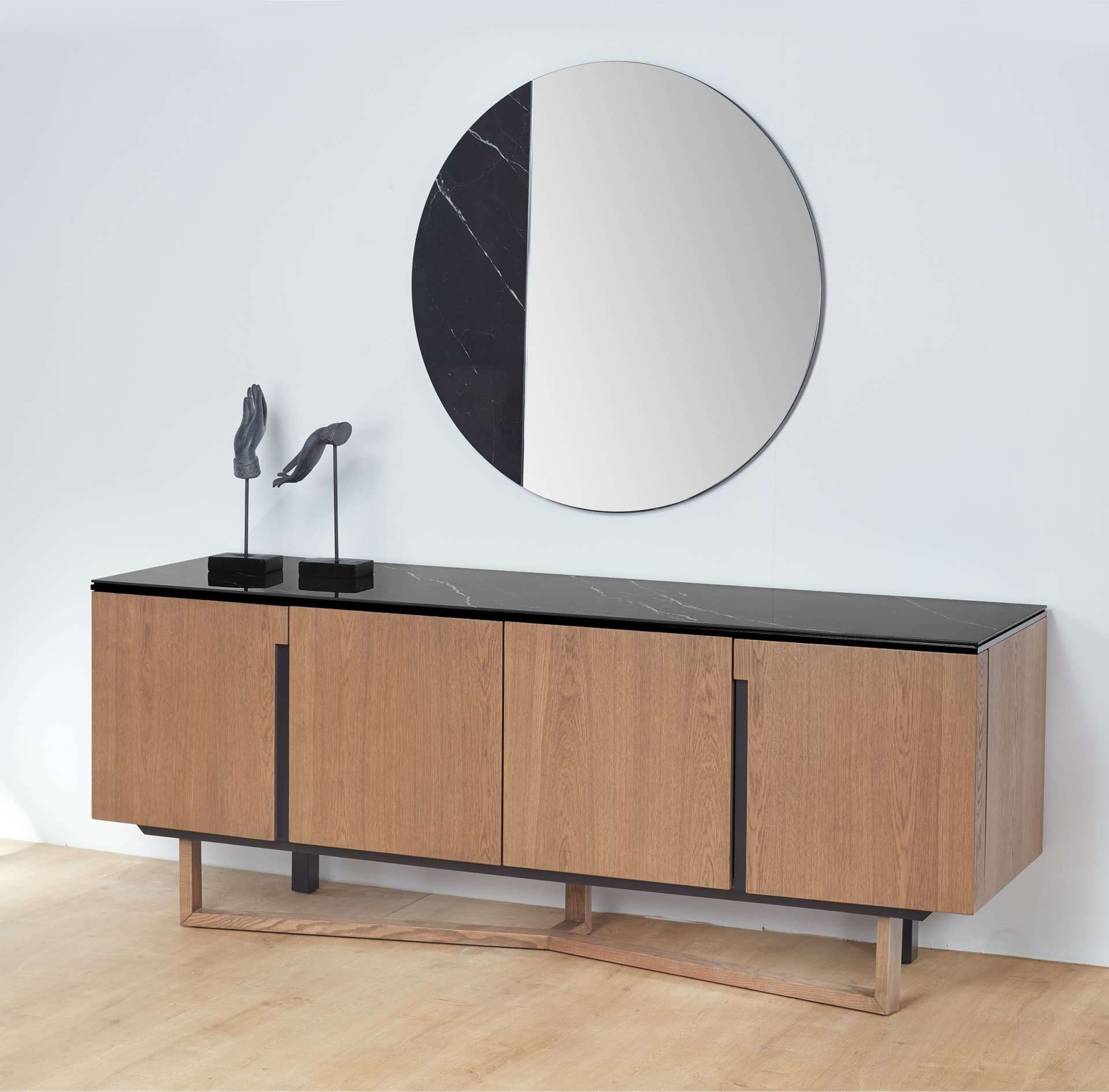 • Μπουφές από φυσικό ξύλο δρυς • Λεπτομέρειες με κεραμικά στοιχεία. • Δυνατότητα αλλαγής διαστάσεων. • Δυνατότητα αλλαγής ξύλου & λούστρου.