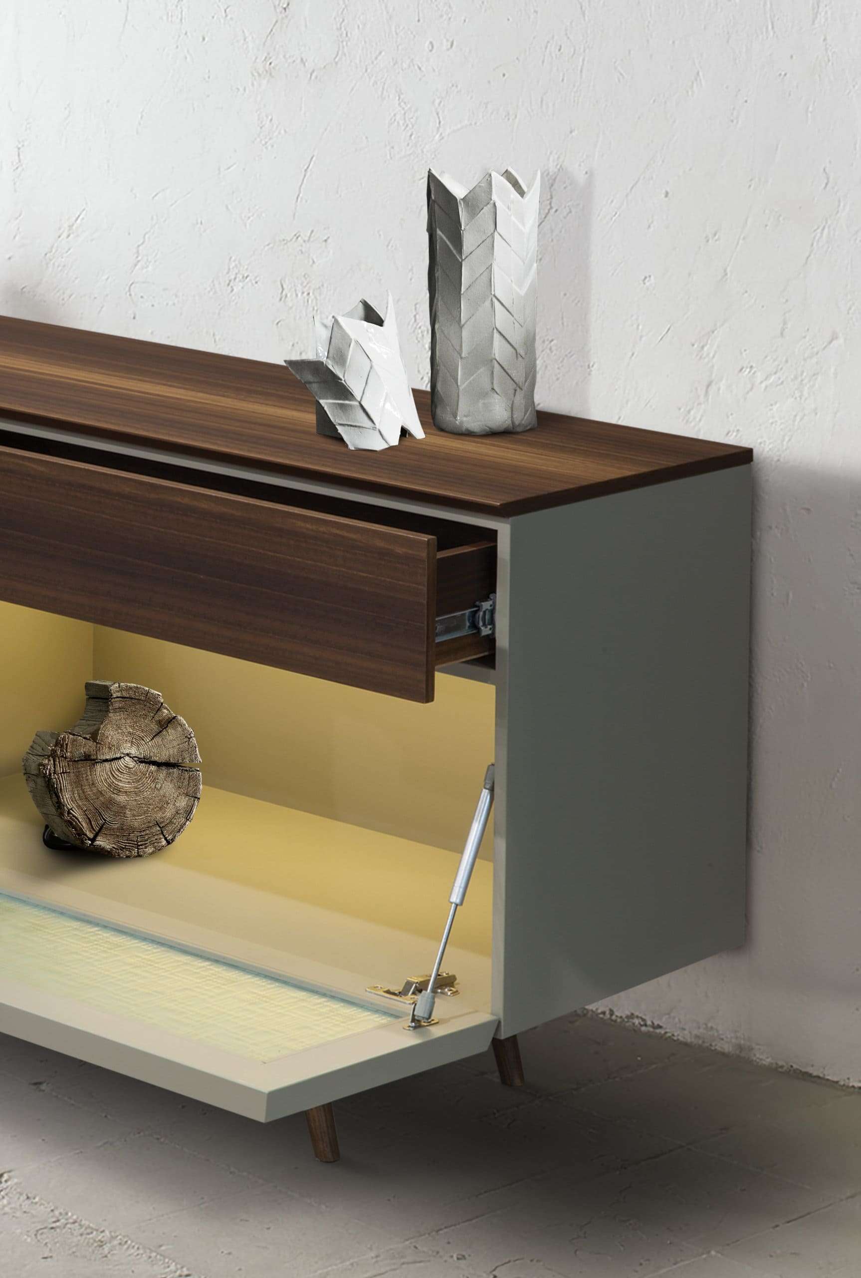 Μπουφές Vintage σε ξύλο δρυς ρουστίκ, με λεπτομέρειες λάκας, τζάμι και κρυφό φωτισμό. Παράγεται σε ειδικές διαστάσεις καθώς και χρώματα επιλογής.
