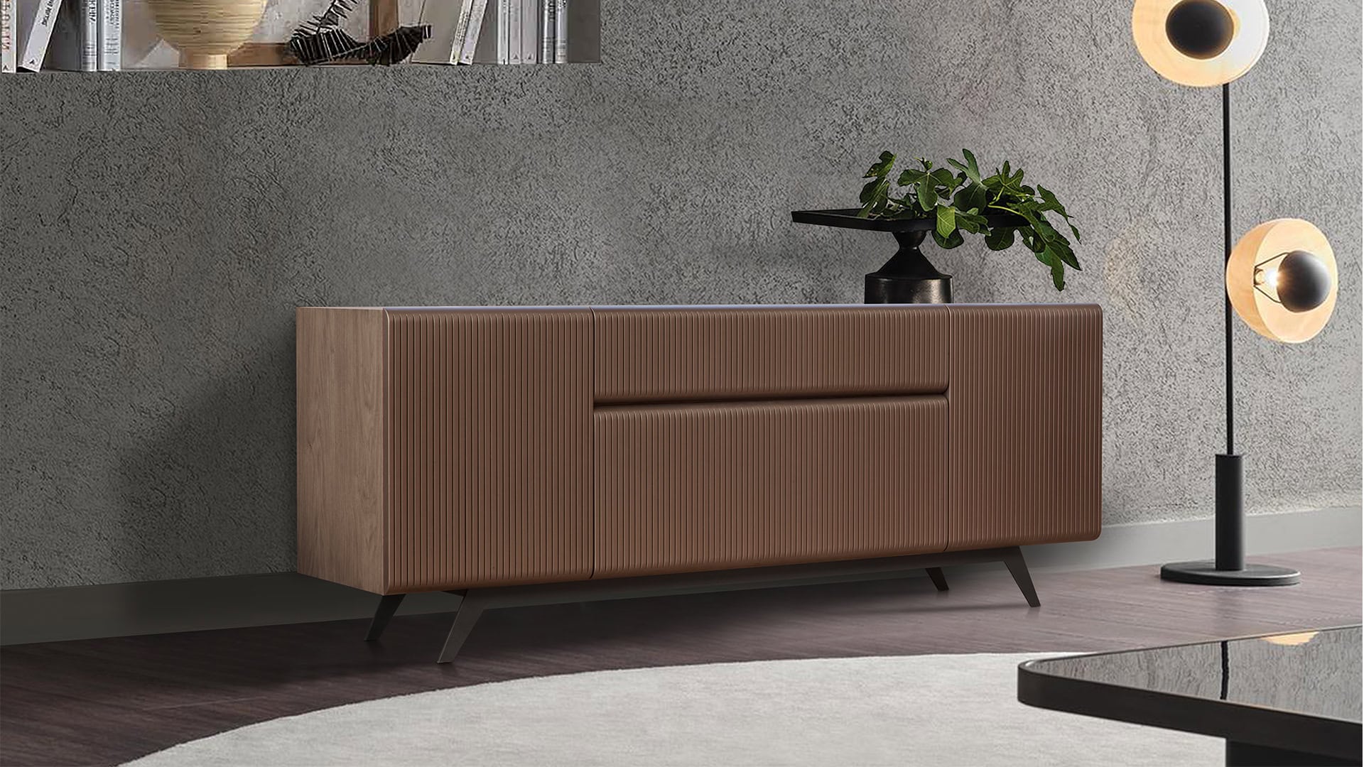 Μπουφές Vortex δρυς και μεταλλικά πόδια. Δυνατότητα αλλαγής διαστάσεων και επιλογής ξύλου