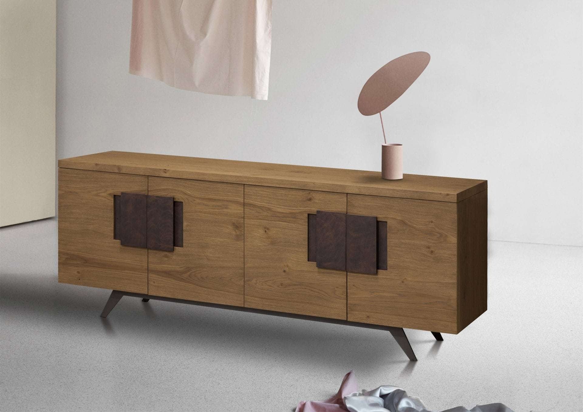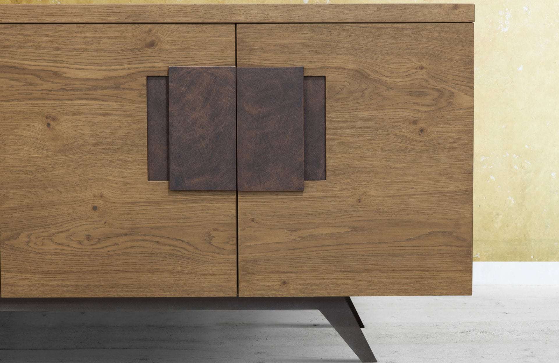 Μπουφές Zoom σε δρυ ρουστίκ με τεχνοτροπία στα πόμολα και μεταλλική βάση. Παράγεται σε επιθυμητές διαστάσεις και χρώματα.