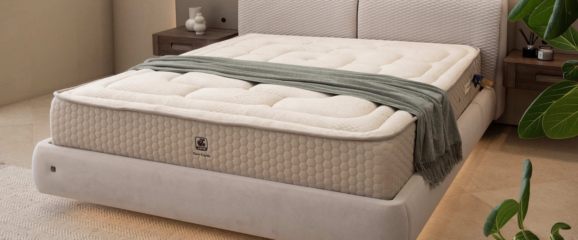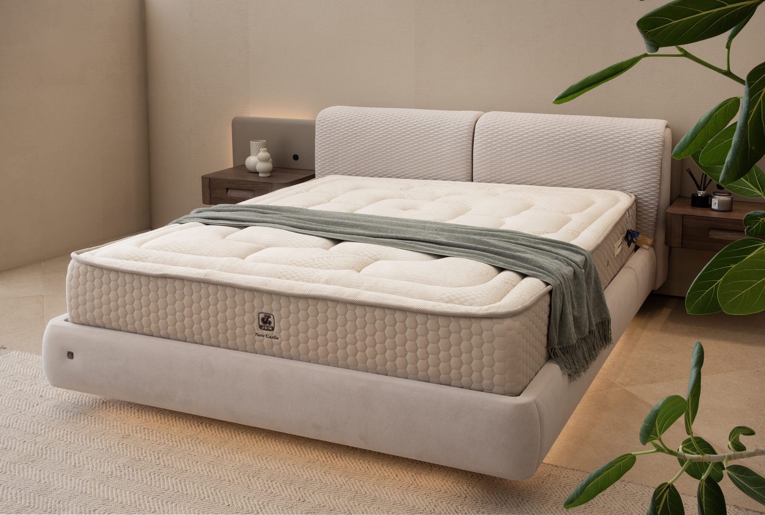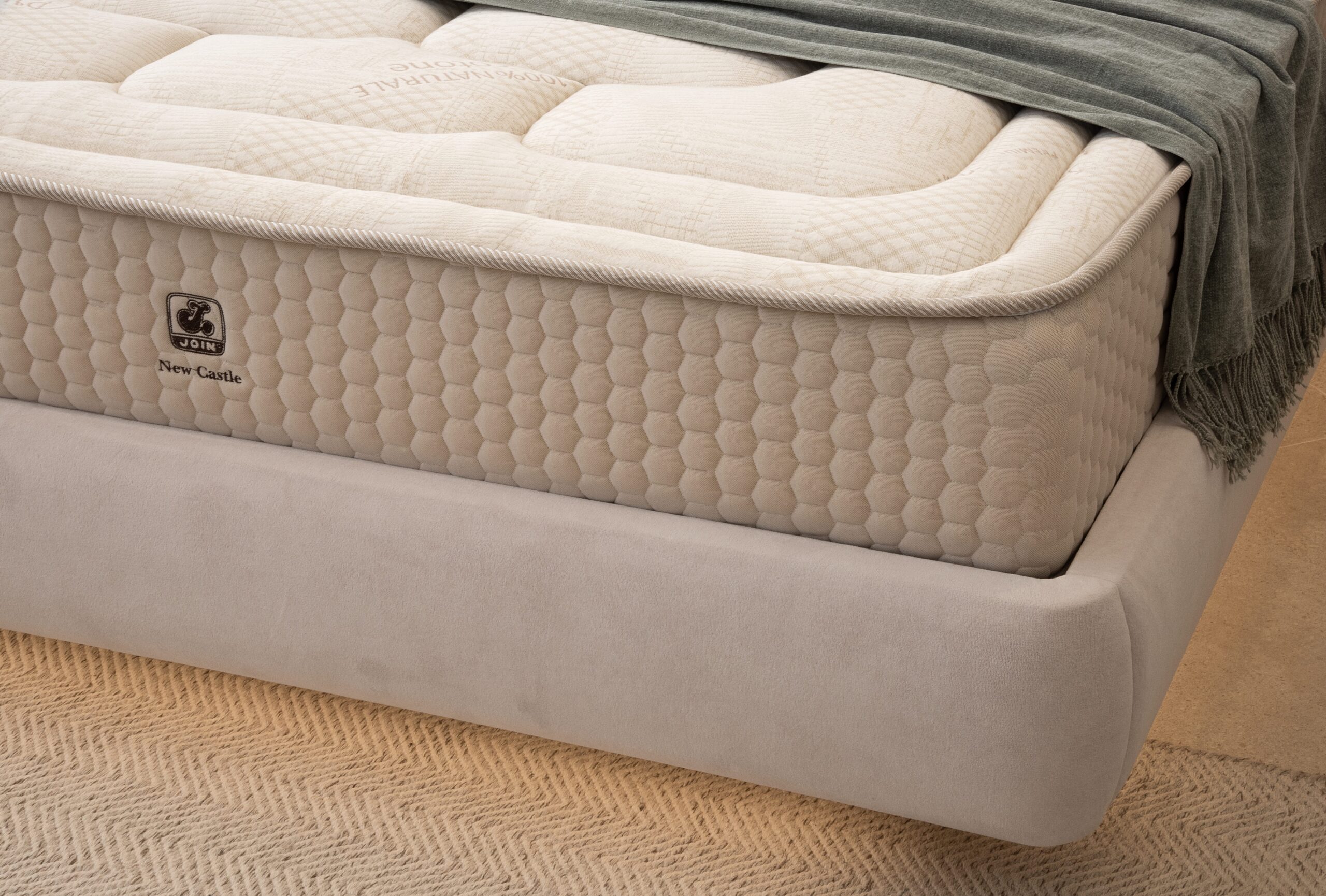 Τα micropocketsprings 510/sqm με τις 7 διαφορετικές ζώνες στήριξης σε συνδυασμό με το φυσικό Latex παρέχουν μια ιδιαίτερη ευκαμψία και ελαστικότητα στο New Castle. Η βάτα από βιολογικό βαμβάκι και το αφράτο καπιτονέ αγκαλιάζουν το ανθρώπινο σώμα και προσφέρουν υψηλά επίπεδα ανατομικότητας και άνεσης.