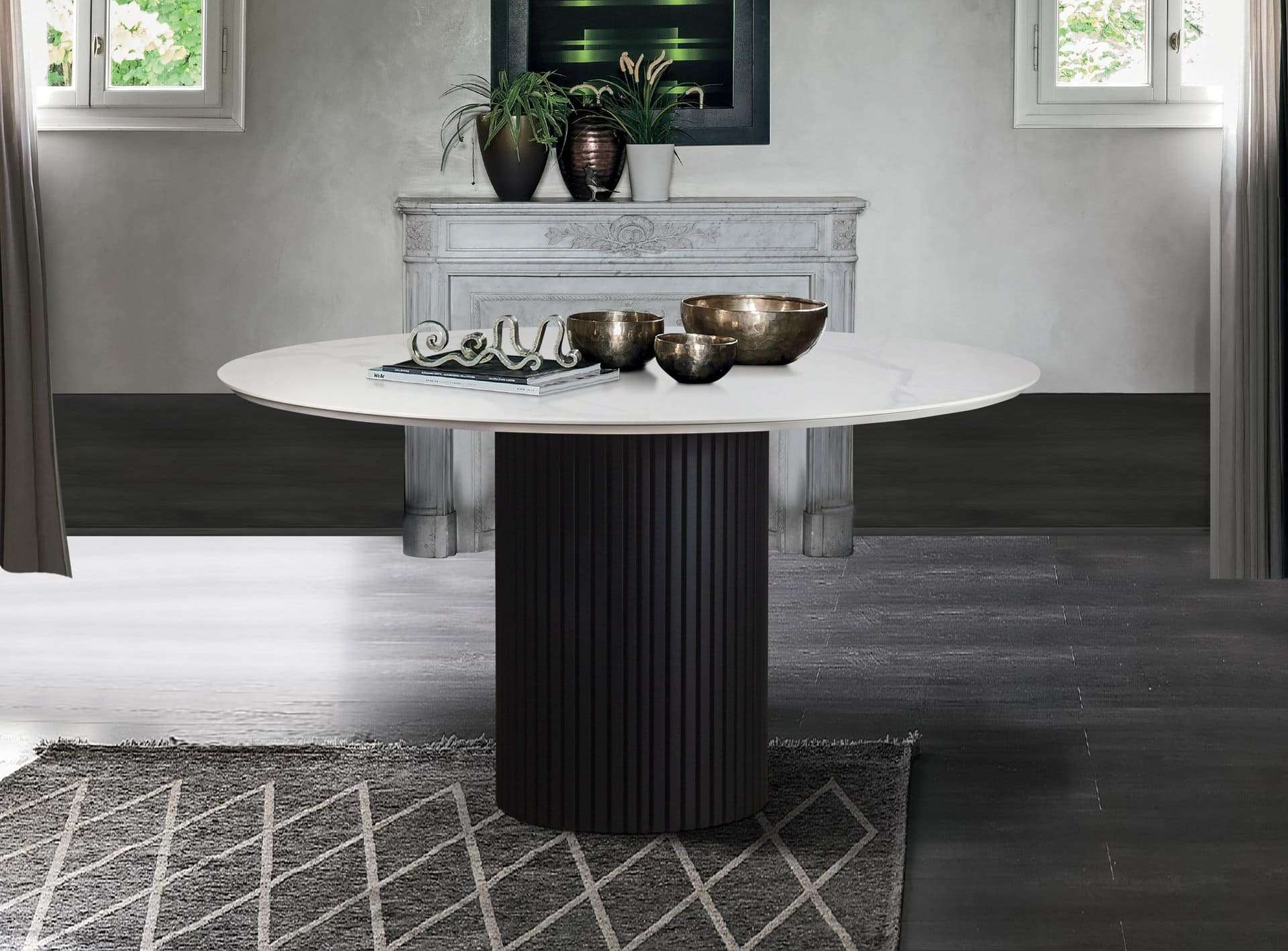 Η τραπεζαρία Nest κατασκευάζεται με στρογγυλή κεραμική επιφάνεια σε χρώματα της επιλογής σας και ευκαμπτο μασίφ στη βάση σε πολλούς χρωματισμούς. Είναι μια ροτόντα που θα εντυπωσιάσει και θα δώσει στυλ στο χώρο σας.