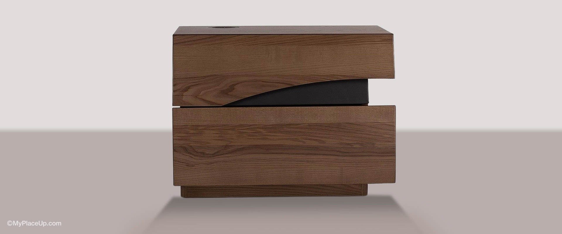 Το κομοδίνο Σάρα Ελιά είναι σχεδιασμένο με έντονες καμπύλες και κατασκευασμένο από φυσικά υλικά, αναζωογονεί και διαμορφώνει τον χώρο σας σε μια καλαίσθητη και κομψή παρουσία. Η εσωτερική δομή είναι από συμπαγή σκελετό μοριοσανίδας και mdf, ενώ είναι επενδεδυμένο mdf με φυσικό καπλαμά δρύς, δρύς rustic, δεσποτάκι, καρυδιά.