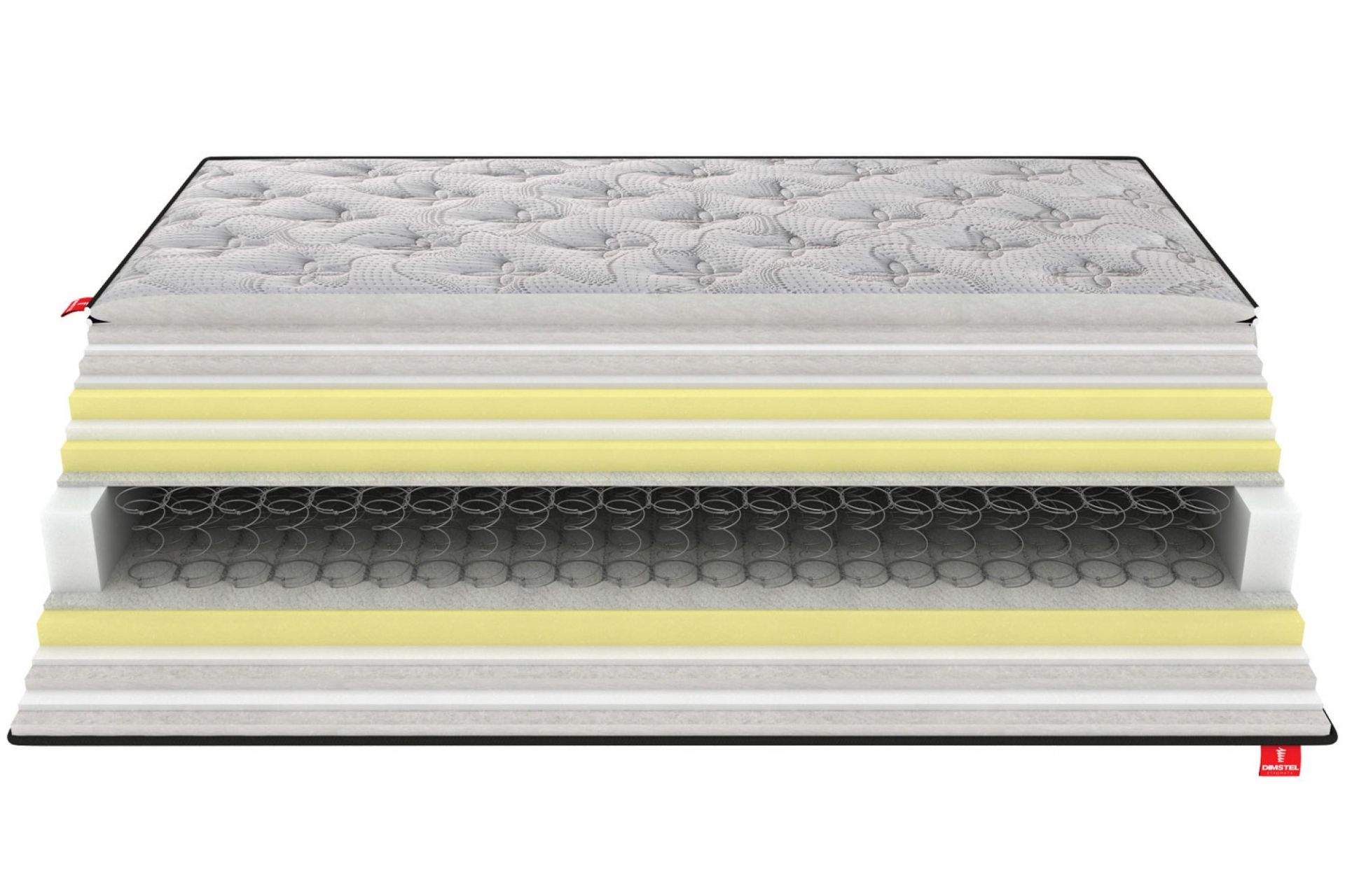 Στρώμα Flex Pillow Top Dimstel Σκληρότητα : Μέτριο Εγγύηση: 10 χρόνια Ύψος: 30 - 32 cm Ελληνικής Κατασκευής Περιγραφή Είναι κατασκευασμένο με υψηλής ποιότητας υλικά που συνδυάζουν την απαλή υφή με μία ευχάριστη αίσθηση φρεσκάδας. Το πλεκτό ύφασμα με επεξεργασία Oxycore αποπνέει απαλότητα και αίσθηση φρεσκάδας, διατηρώντας το στρώμα δροσερό και άνετο κατά τη διάρκεια της νύχτας. Το αφρώδες υλικό καπιτονέ Flex Foam παρέχει εξαιρετική αντοχή και υποστήριξη. Αυτό το υλικό προσαρμόζεται στις καμπύλες του σώματος και παρέχει μια άνετη και ευχάριστη αίσθηση κατά τη διάρκεια του ύπνου. Το φιλμ συγκράτησης υλικών καπιτονέ Non Woven ενισχύει τη σταθερότητα και την αντοχή του στρώματος, επιτρέποντας την ομοιόμορφη κατανομή. Επιπλέον, το στρώμα διαθέτει latex από φυσικό καουτσούκ με 7 ζώνες στήριξης. Αυτό το υλικό προσφέρει εξαιρετική ελαστικότητα και προσαρμόζεται στις φυσικές καμπύλες του σώματος. Το στρώμα διαθέτει επίσης αφρώδες υλικό υψηλής ποιότητας και αντοχής Flex Foam, που προσφέρει εξαιρετική άνεση και απαλότητα. Το υλικό Super Flex Foam είναι υψηλής ελαστικότητας και προσφέρει ακόμα μεγαλύτερη άνεση και απαλότητα στο στρώμα. Ο λευκός βαμβακερός τάπητας προσφέρει μια αίσθηση φυσικότητας και αναζωογόνησης, επιτρέποντας στο σώμα να αναπνέει ελεύθερα κατά τη διάρκεια του ύπνου. Τέλος, τα ελατήρια Bonnell ελβετικής τεχνολογίας με 3 ζώνες στήριξης αποτελούν μια μοναδική καινοτομία που παράγει η DIMSTEL. Αυτή η τεχνολογία εξασφαλίζει ομοιόμορφη υποστήριξη σε όλη την επιφάνεια του στρώματος και βελτιώνει την ευθυγράμμιση του σώματος. Χαρακτηριστικά Πλεκτό ύφασμα με επεξεργασία Oxycore - απαλή υφή και αίσθηση φρεσκάδας Αφράτη βάτα στρωματοποιίας - Softfil Αφρώδες υλικό καπιτονέ - Flex Foam Αφράτη βάτα στρωματοποιίας - Softfil Φιλμ συγκράτησης υλικών καπιτονέ - Non Woven Latex από φυσικό καουτσούκ με 7 ζώνες στήριξης Αφρώδες υλικό υψηλής ποιότητας και αντοχής - Flex Foam Αφρώδες υλικό υψηλής ελαστικότητας και άνεσης - Super Flex Foam Λευκός βαμβακερός τάπητας Ελατήρια Bonnell ελβετικής τεχνολογίας με 3 ζώνες στήριξης - Μοναδική καινοτομία που παράγει η DIMSTEL Περιμετρική στήριξη με αφρώδες υλικό Λευκός βαμβακερός τάπητας Φιλμ συγκράτησης ελατηρίων - Non Woven Αφράτη βάτα στρωματοποιίας - Softfil Πλεκτό ύφασμα με επεξεργασία Oxycore - απαλή υφή και αίσθηση φρεσκάδας