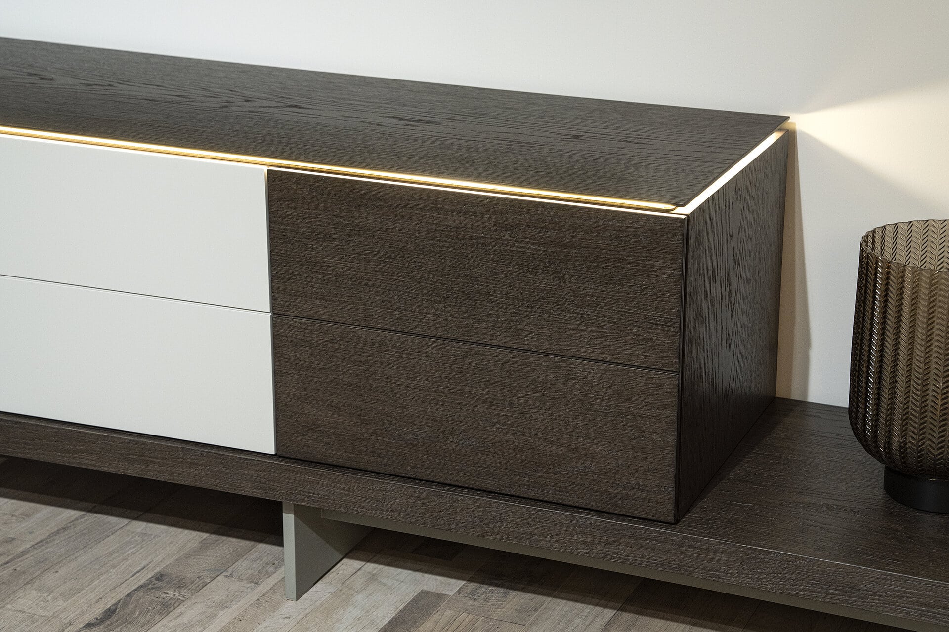 Η λάκα ματ και το ξύλο δρυς μας χαρίζουν έναν αρμονικό συνδυασμό υλικών και χρωμάτων. Και γεμίζουν το χώρο μας με υψηλή αισθητική.