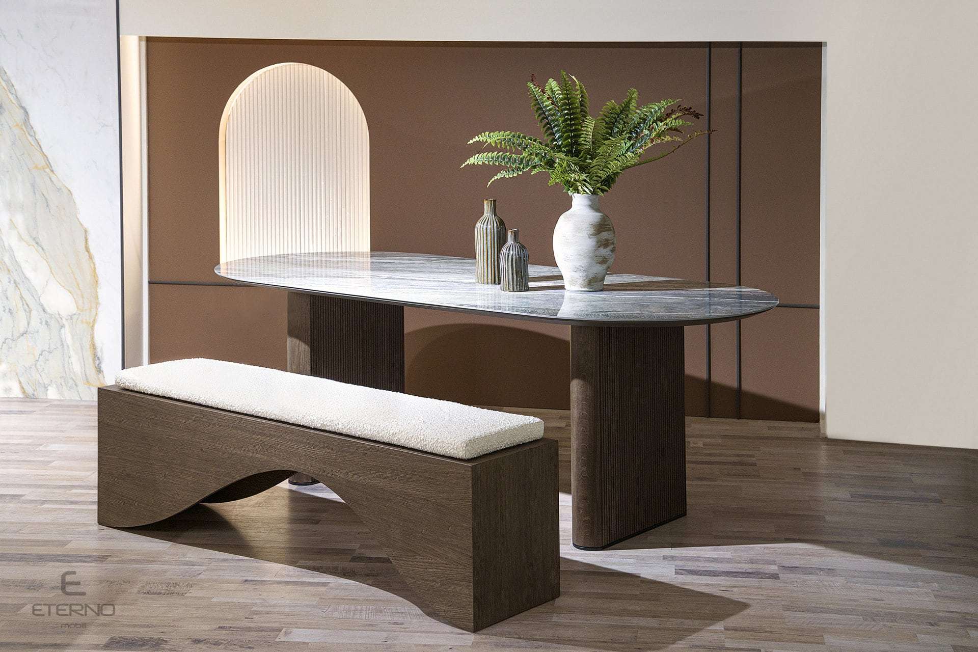 Με εντυπωσιακή κεραμική επιφάνεια η τραπεζαρία Icon ceramic αποτελεί μία ολοκληρωμένη πρόταση που θα δημιουργήσει ένα ξεχωριστό αισθητικό αποτέλεσμά στο σπίτι σας.