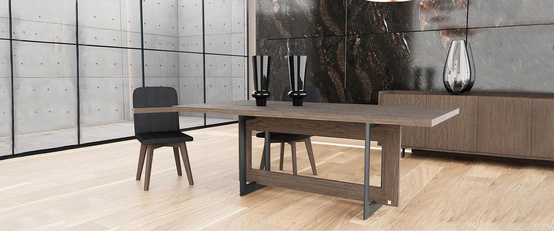 Οι έντονες γωνίες της Τραπεζαρίας Motivo δικαιολογούν απόλυτα το όνομά της. Αφαιρετική ως προς την αισθητική της είναι αγαπημένο προϊόν όσων προτιμούν τη minimal διακόσμηση.