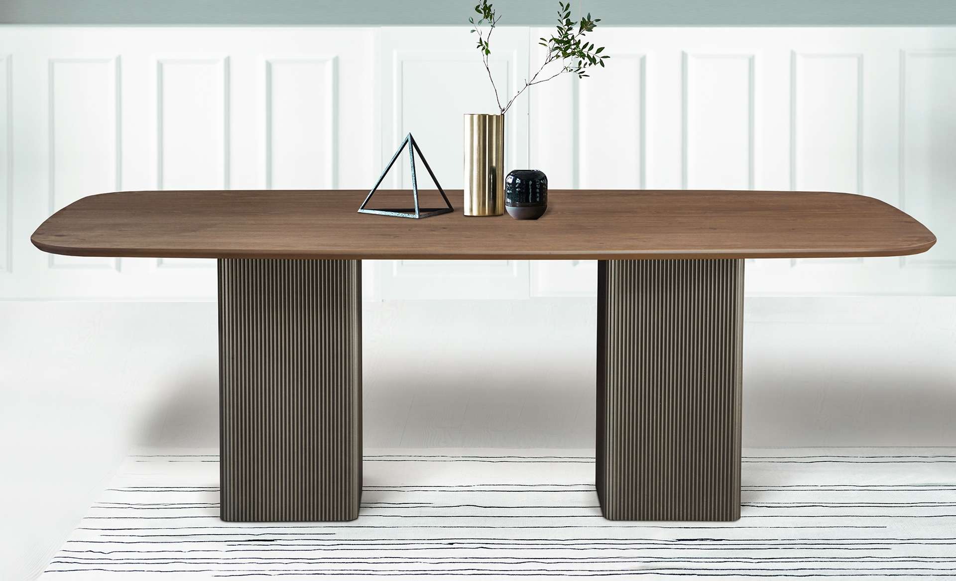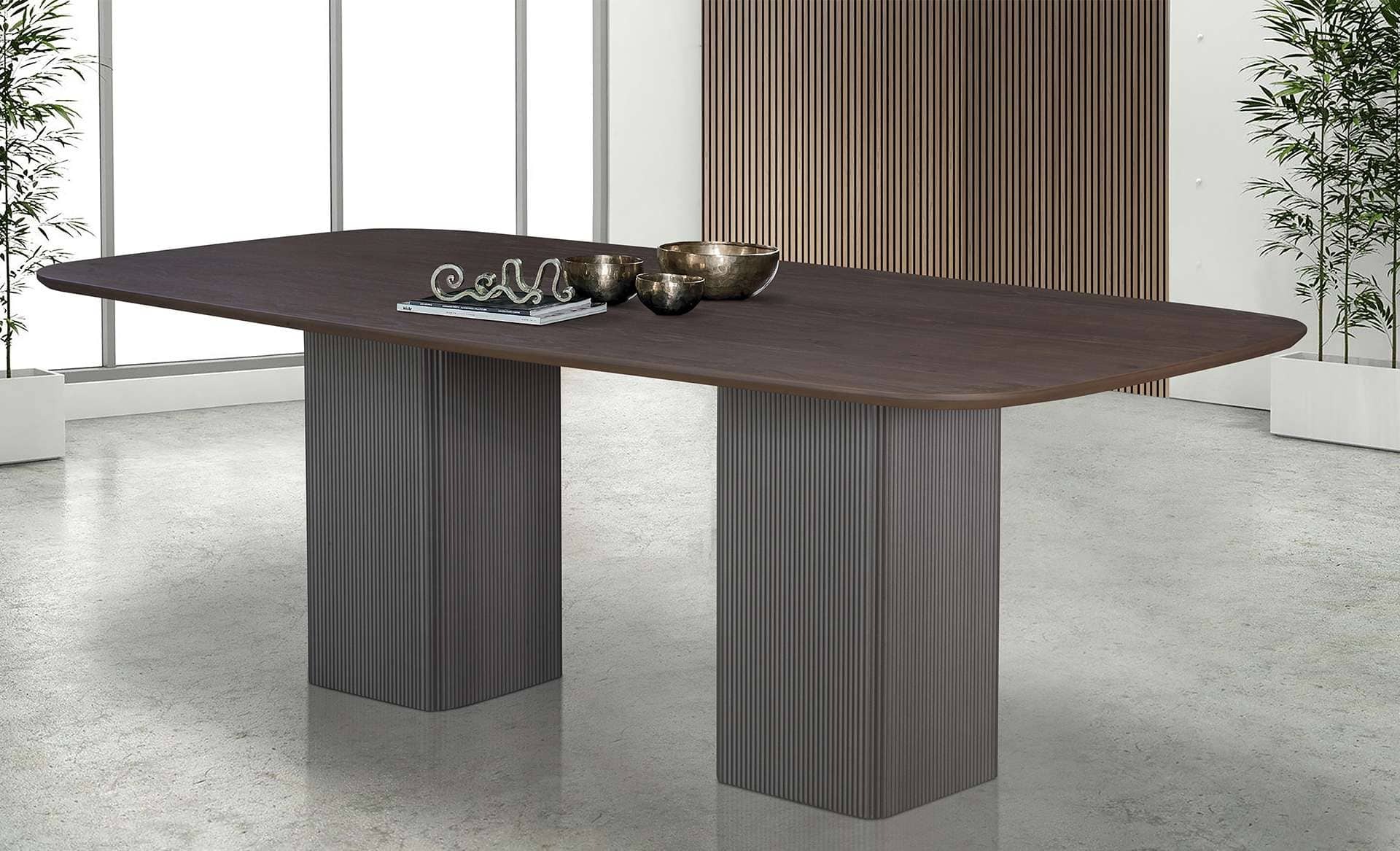 Τραπεζαρία με ξύλινη δρυς επιφάνεια με εύκαμπτο μασίφ δρυς στα πόδια. Την κατασκευάζουμε σε διαστάσεις και χρώματα της αρεσκείας σας.