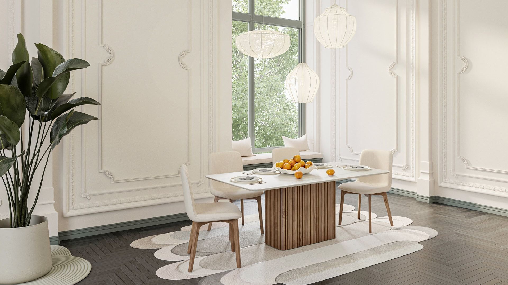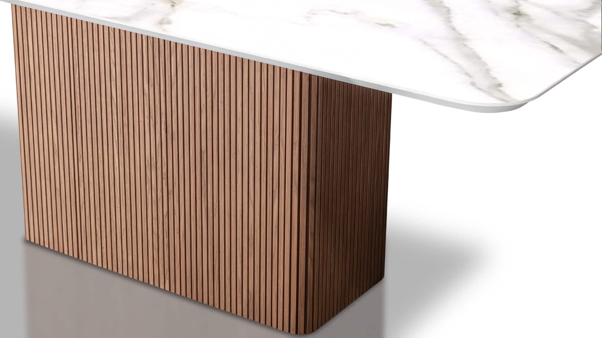 Κεραμική τραπεζαρία με κεντρική ξύλινη βάση στα χρώματα τις επιλογής σας. Κεραμική επιφάνεια σε ματ και γυαλιστερές αποχρώσεις. Την κατασκευάζουμε σε διαστάσεις και χρώματα της αρεσκείας σας.