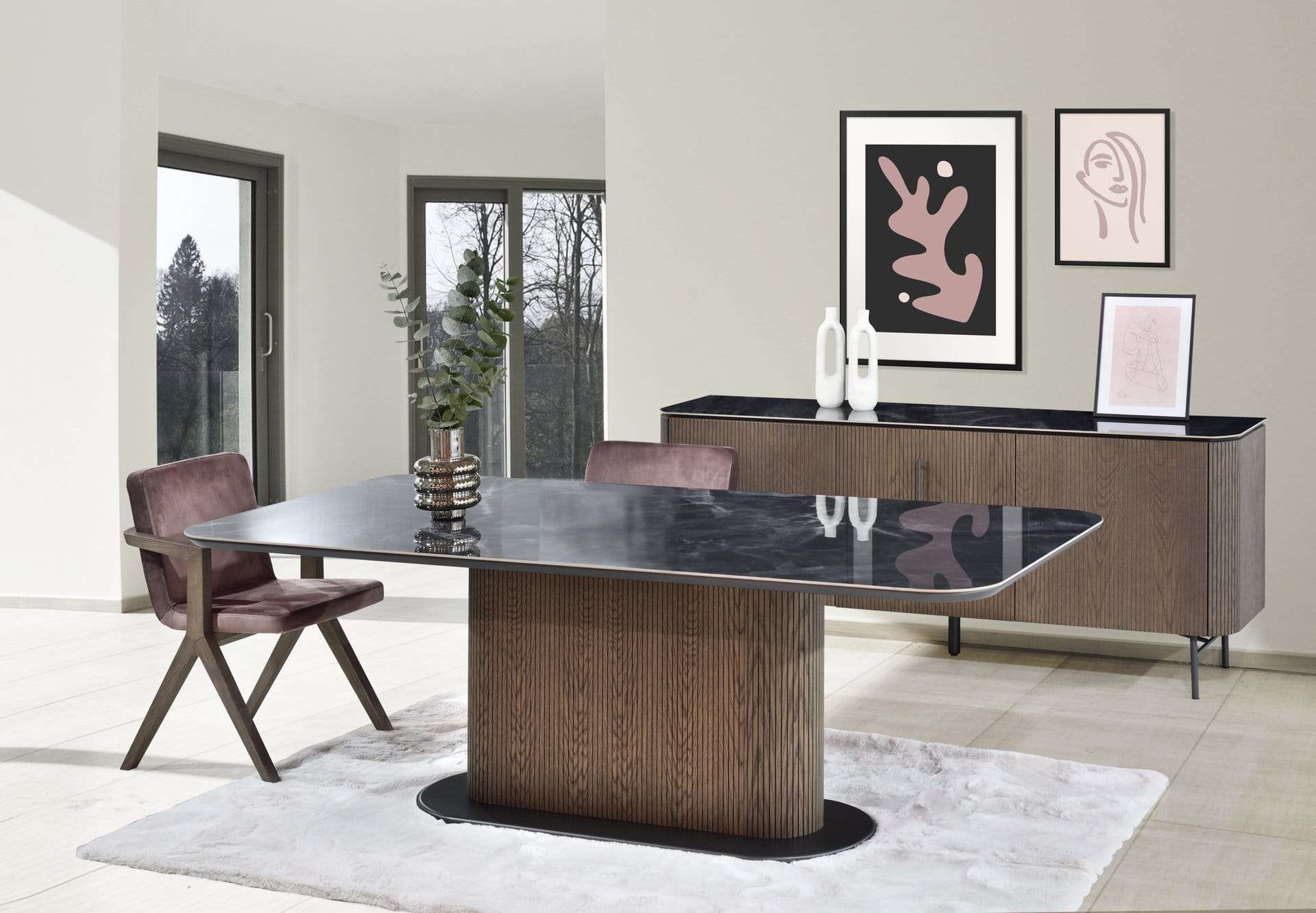 Με εντυπωσιακή κεραμική επιφάνεια η τραπεζαρία River ceramic αποτελεί μία ολοκληρωμένη πρόταση που θα δημιουργήσει ένα ξεχωριστό αισθητικό αποτέλεσμά στο σπίτι σας. Επιλογή διαστάσεων και αποχρώσεων ξύλου και κεραμικού