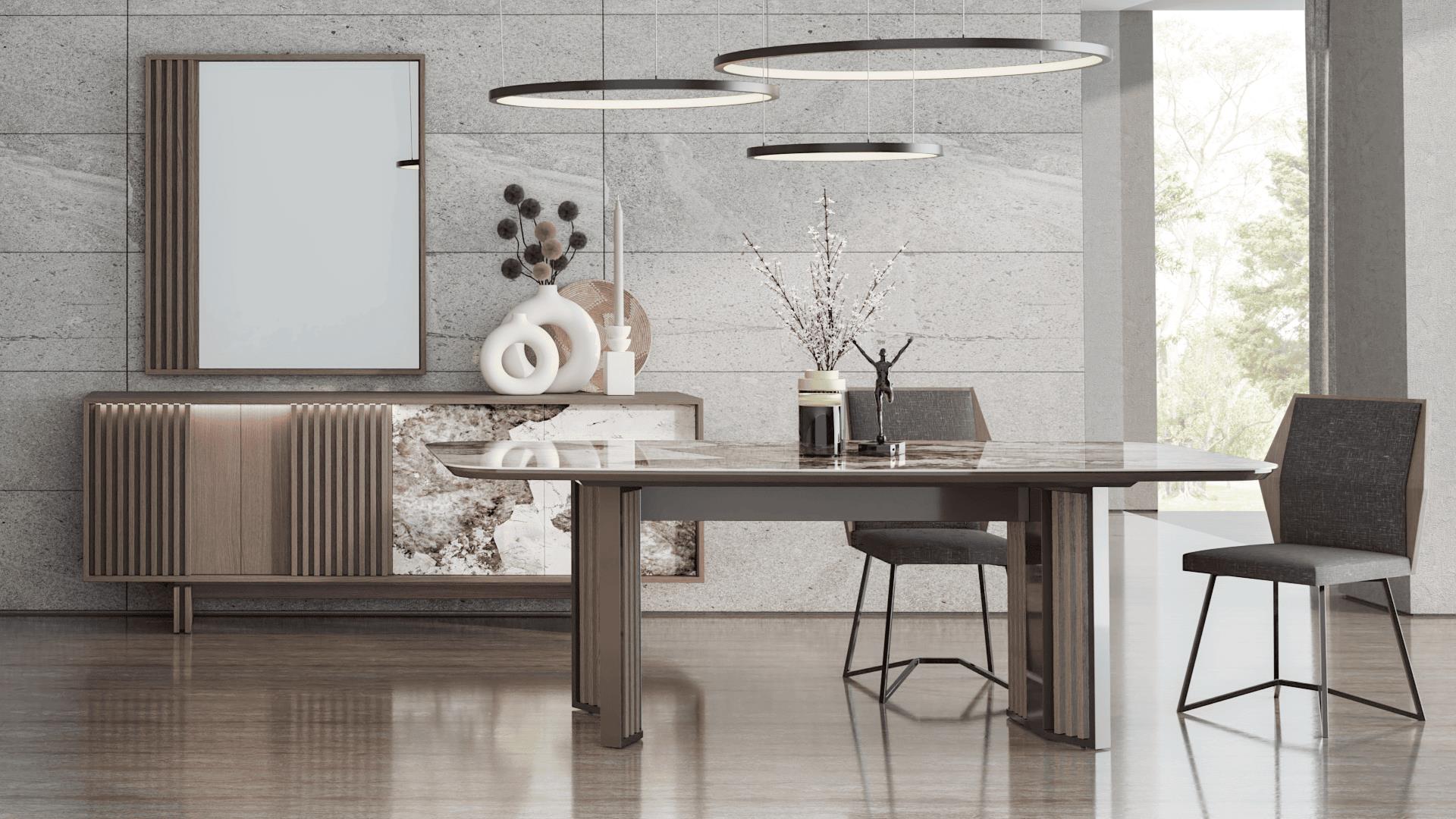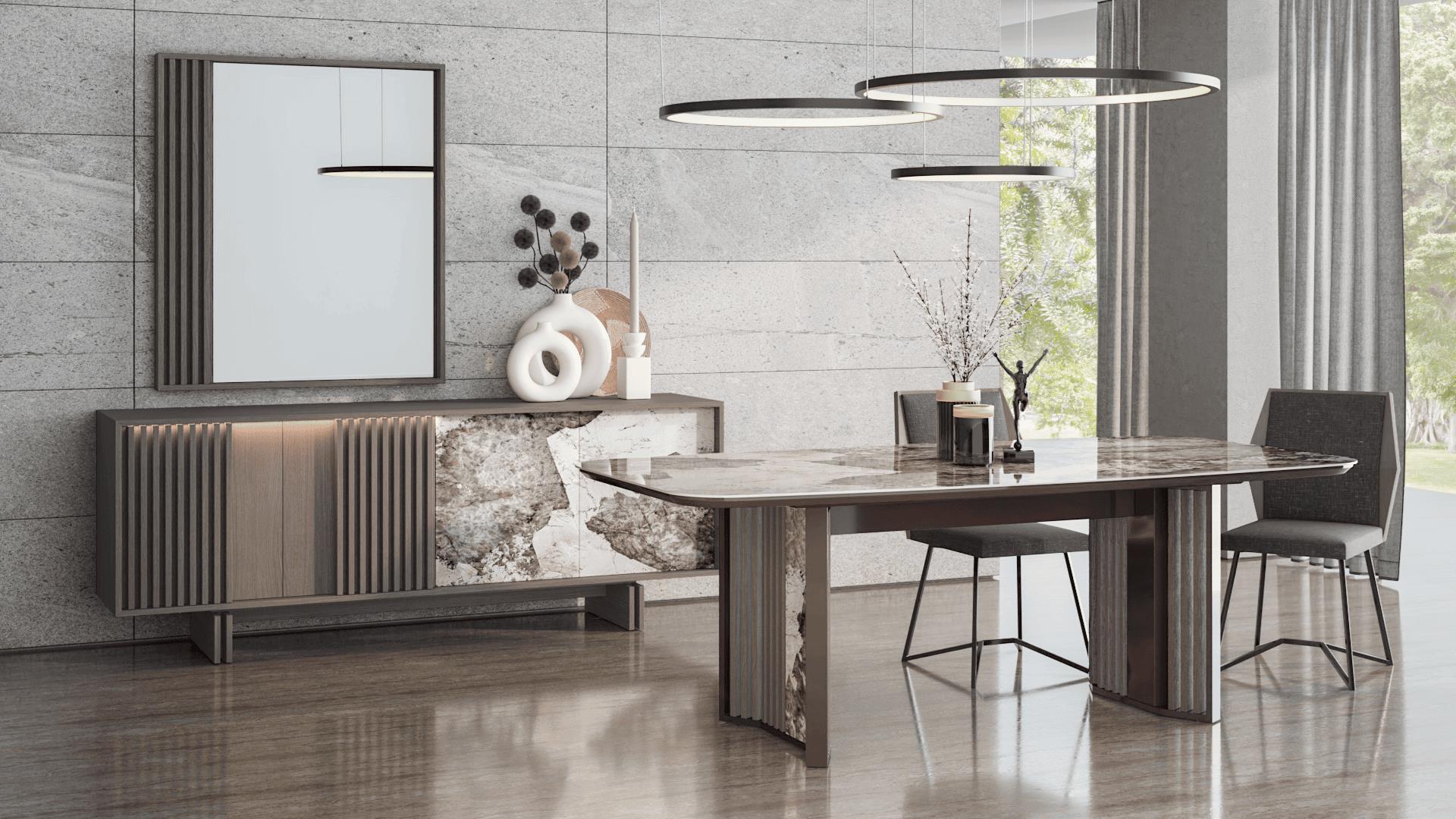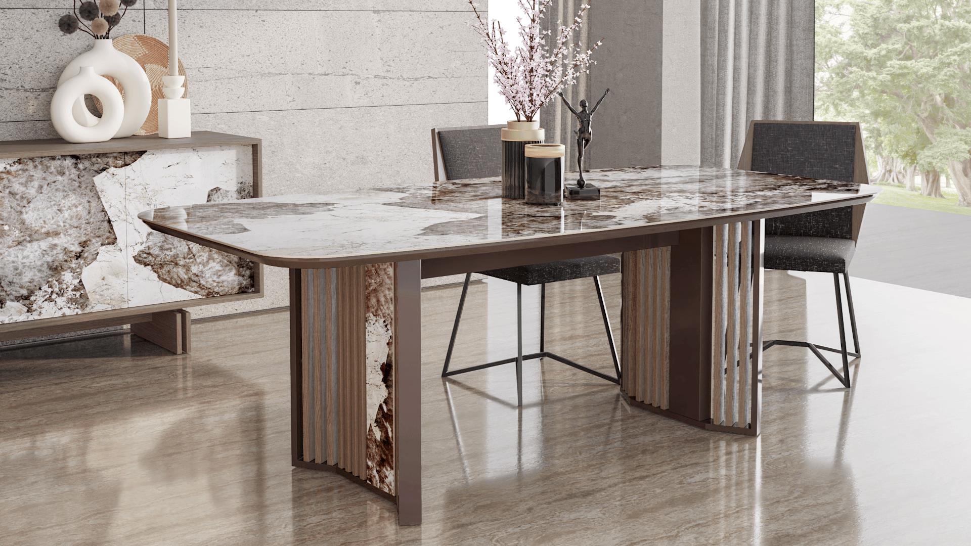 Τραπεζαρία Sempre Ξύλο : Ευκάλυπτος Διάσταση: 215cm x 110cm Ξύλο ευκαλύπτου στο καπάκι και λεπτομέρειες από ευκάλυπτο, λάκα και κεραμικό υλικό στα πόδια. Με πρωτοποριακά χαρακτηριστικά τόσο στη σχεδίαση όσο και στο πάντρεμα των υλικών. Συνδυάζεται με τον μπουφέ Sempre, τον καθρέπτη Sempre και με πολλές καρέκλες από την συλλογή μας. Έξτρα: προέκταση στα 170€ Έξτρα: κεραμικό στοιχείο στα πόδια = 80€ για κάθε πόδι Δυνατότητα αλλαγών.