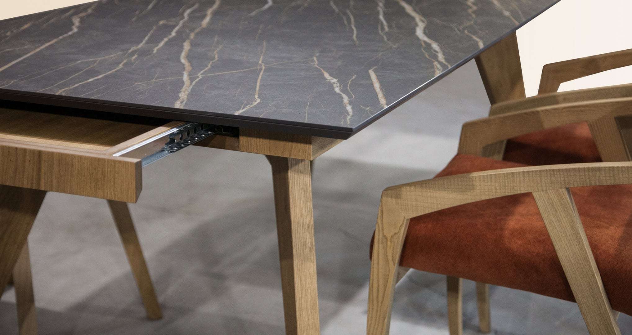 Κεραμική τραπεζαρία με κεντρική ξύλινη βάση στα χρώματα τις επιλογής σας. Κεραμική επιφάνεια σε ματ και γυαλιστερές αποχρώσεις. Η τραπεζαρία Spider Stone έχει μηχανισμό προέκτασης 45cm. Την κατασκευάζουμε σε διαστάσεις και χρώματα της αρεσκείας σας.