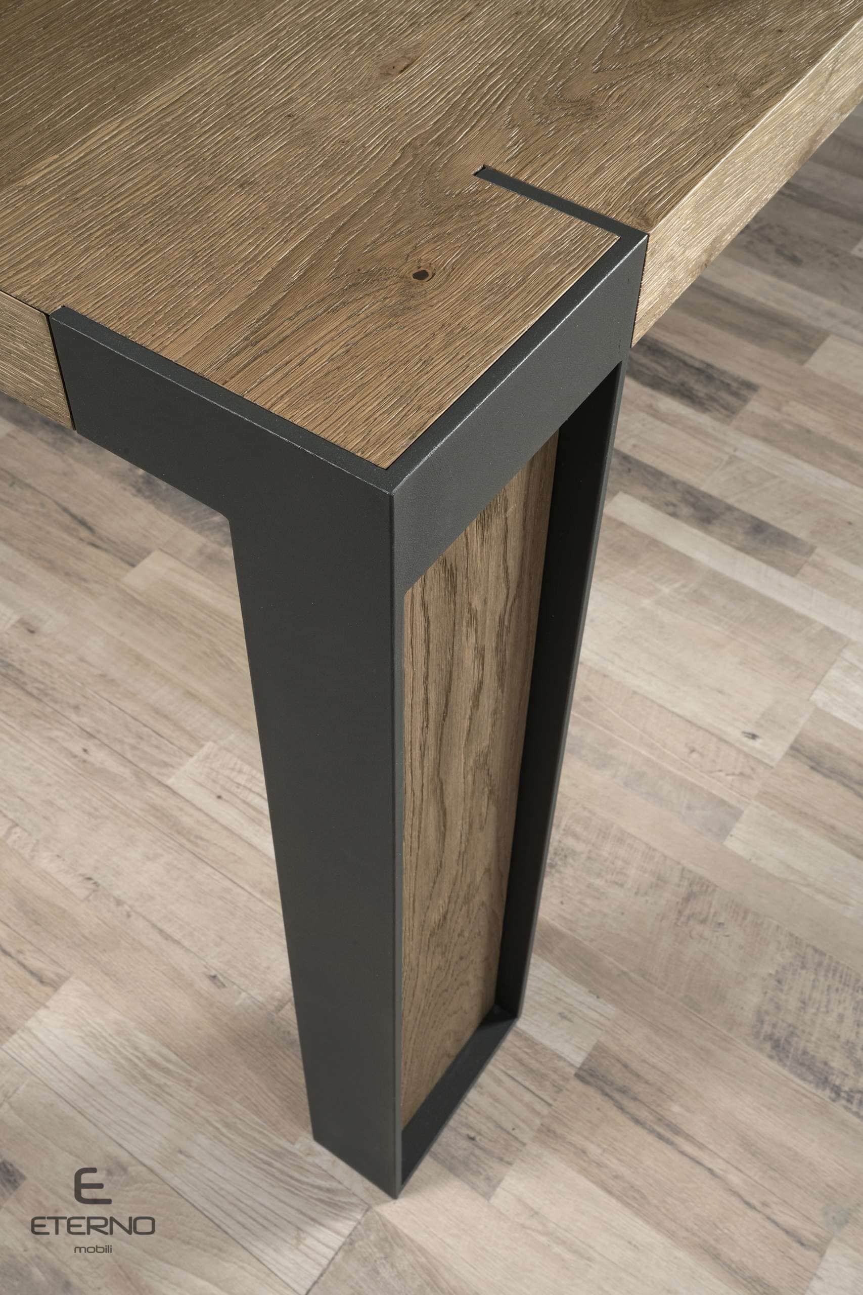 Τραπεζαρία Steel διάσταση 200 x 100cm σε δρυ rustic και πόδια με μέταλλο και ξύλο.