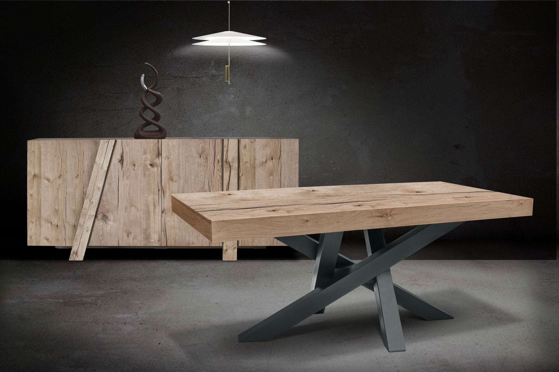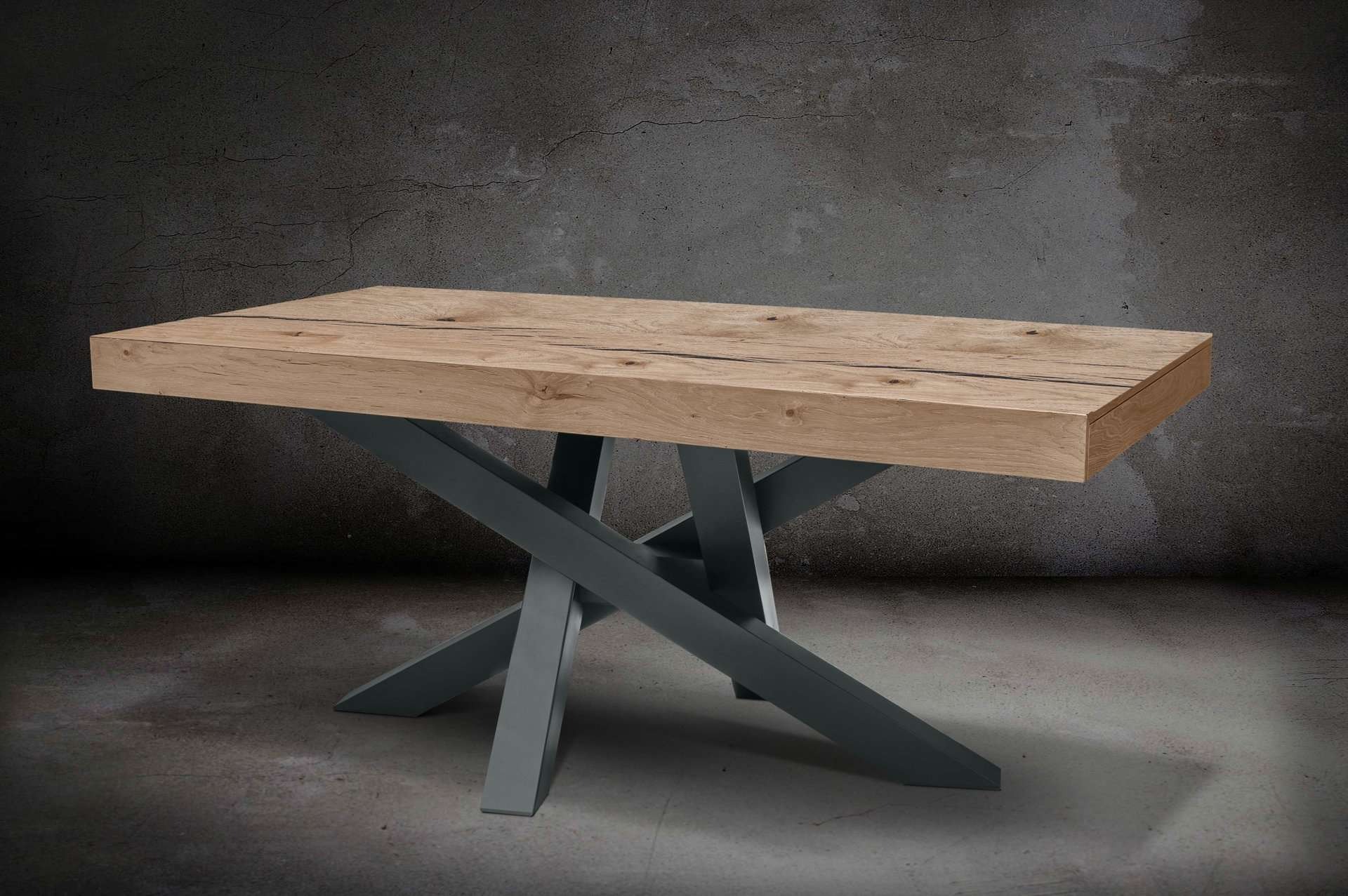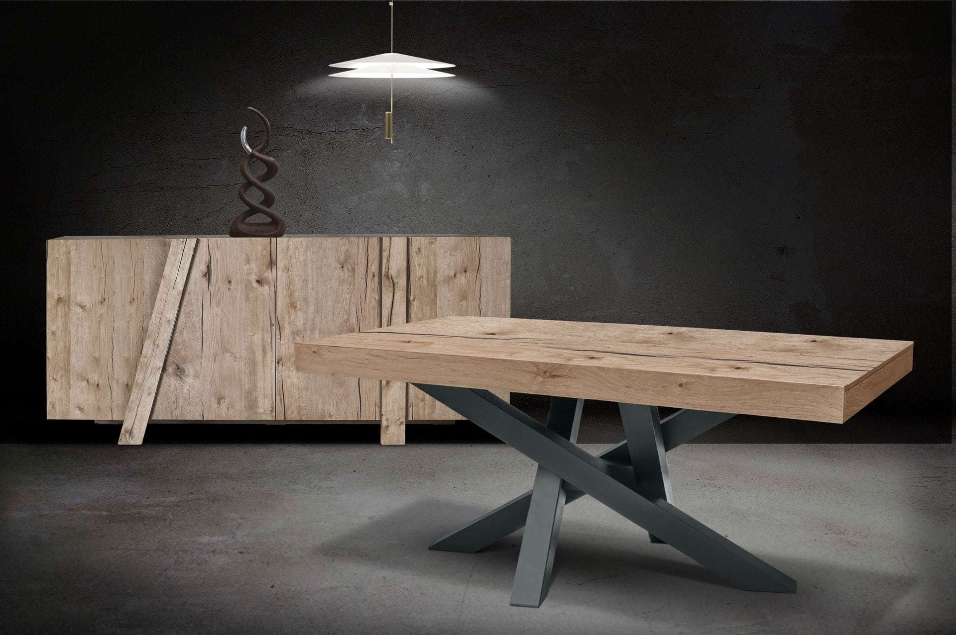Μοντέρνα τραπεζαρία με ιδιαίτερη βάση βαμμένη με λάκα σε χρώματα τις επιλογής σας. Η τραπεζαρία Τ6 έχει ενσωματωμένο μηχανισμό προέκτασης 45cm. Την κατασκευάζουμε σε διαστάσεις, ξύλο και χρώματα προσαρμοσμένα στο χώρο σας.