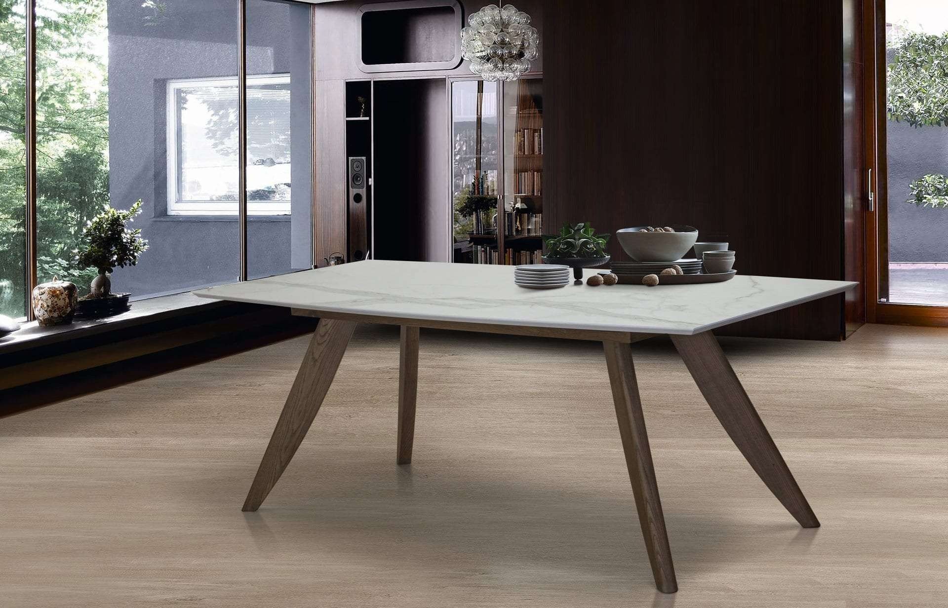Κεραμική τραπεζαρία με μασίφ ξύλινα πόδια σε χρώματα τις επιλογής σας. Κεραμική επιφάνεια σε ματ και γυαλιστερές αποχρώσεις. Η τραπεζαρία Temple Stone κατασκευάζεται σε διαστάσεις και χρώματα της αρεσκείας σας.