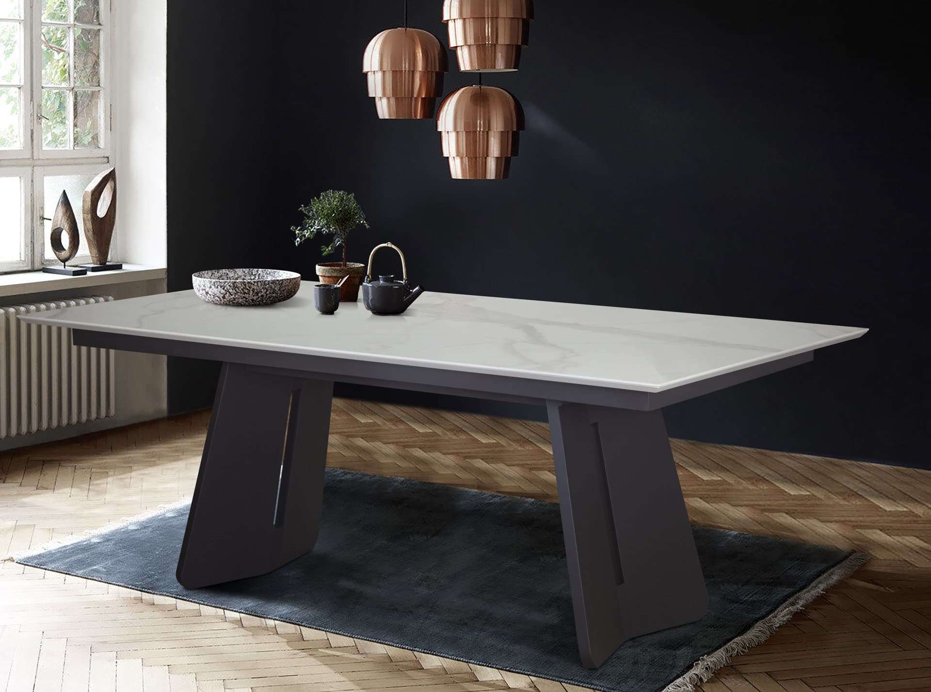 Κεραμική τραπεζαρία με μίνιμαλ βάση σε λάκα στα χρώματα τις επιλογής σας. Κεραμική επιφάνεια σε ματ και γυαλιστερές αποχρώσεις. Η τραπεζαρία Void Stone έχει μηχανισμό προέκτασης 45cm. Την κατασκευάζουμε σε διαστάσεις και χρώματα της αρεσκείας σας.