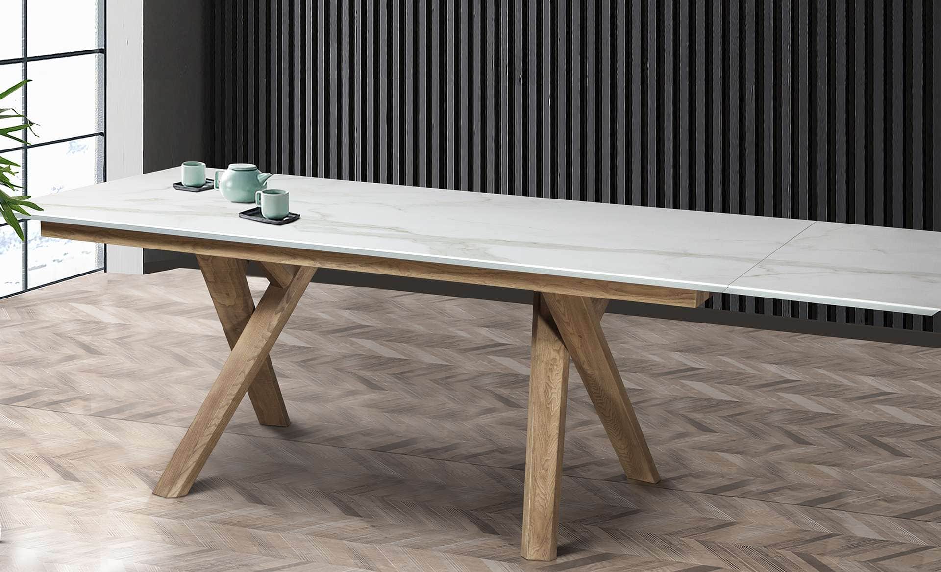 Κεραμική τραπεζαρία με χιαστή βάση σε λάκα στα χρώματα τις επιλογής σας. Κεραμική επιφάνεια σε ματ και γυαλιστερές αποχρώσεις. Η τραπεζαρία X-Stone έχει μηχανισμό προέκτασης 45cm. Την κατασκευάζουμε σε διαστάσεις και χρώματα της αρεσκείας σας.