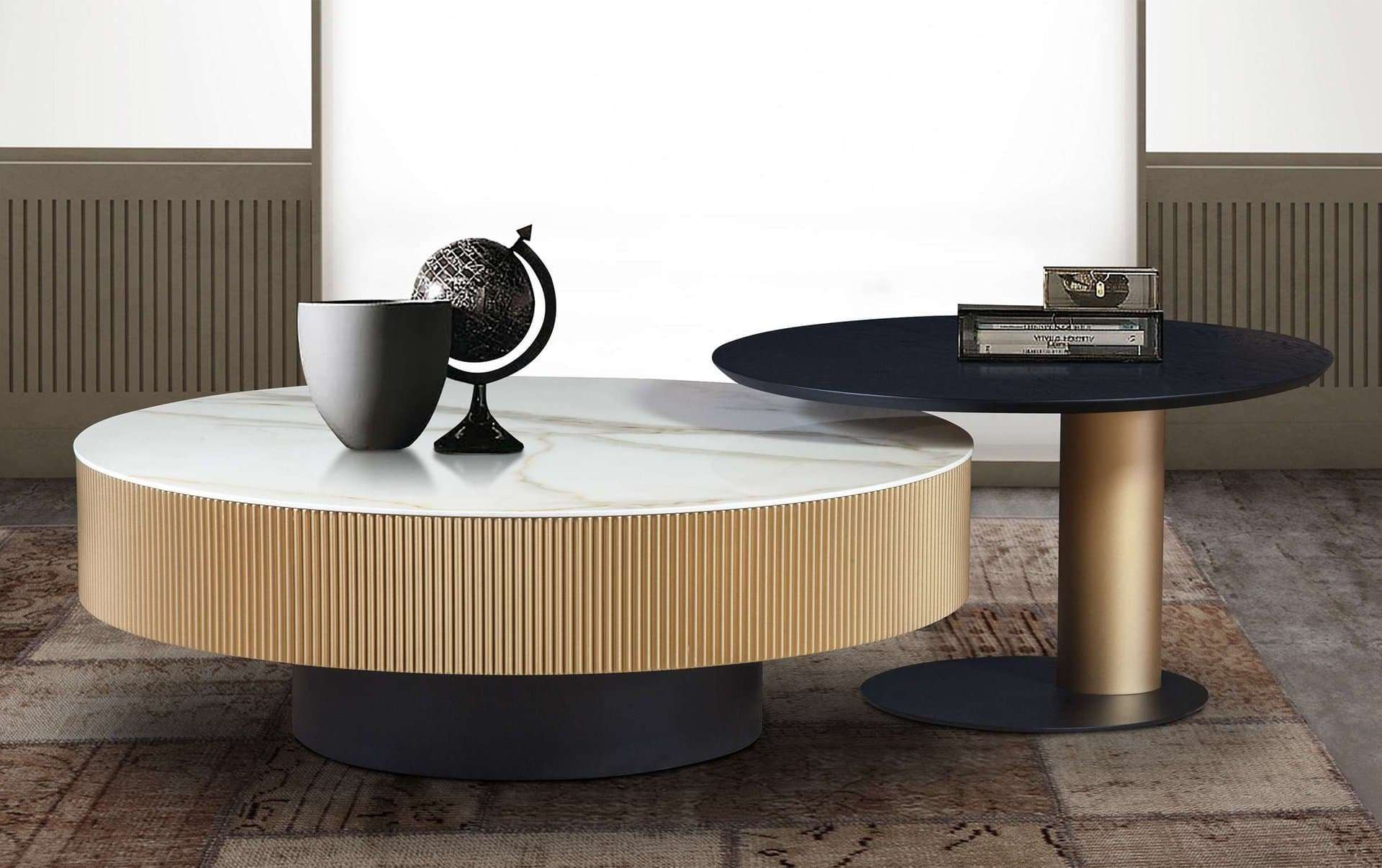 Τραπεζάκια σαλονιού σε ιδιαίτερο design, με κεραμικό και λάκα με εύκαμπτο υλικό, στα χρώματα της επιλογής σας.