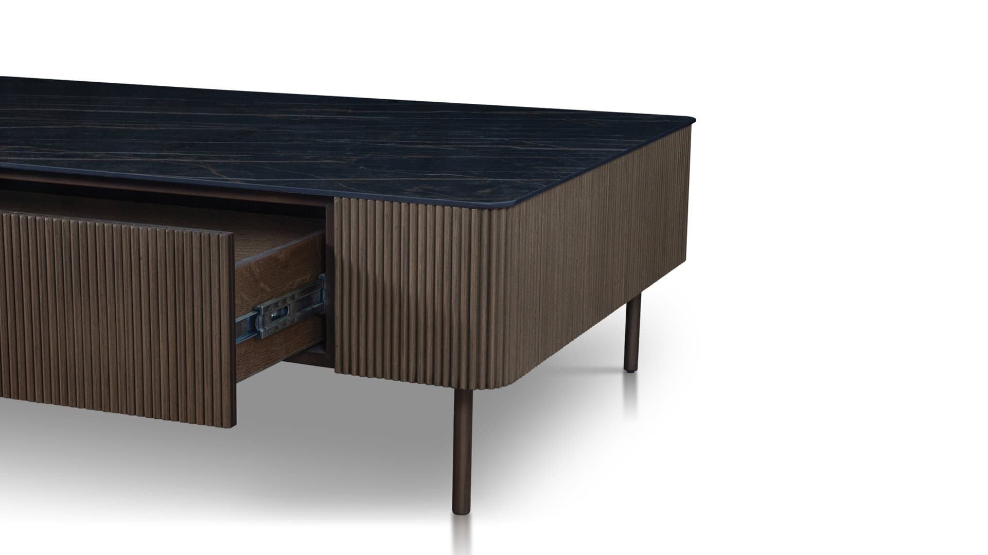 Το τραπεζάκι σαλονιού Goliath ξεχωρίζει για τον συνδυασμό κεραμικής επιφάνειας και panel κυκλικής επιτομής σε δρυς, αποπνέοντας πολυτέλεια και υψηλή αισθητική. Με δυναμικό σχεδιασμό και επιβλητική παρουσία, αποτελεί μια επιλογή που μεταμορφώνει τον χώρο σε σημείο αναφοράς.