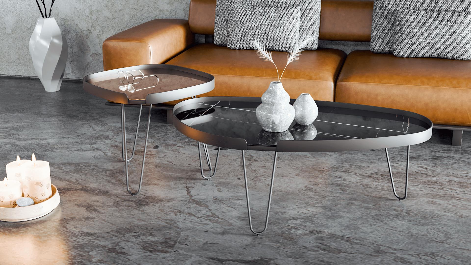 Ένα τραπέζι σαλονιού με ιδιαίτερο σχέδιο σε επιφάνεια ξύλου ή κεραμικού της επιλογή σας. Η βάση του τραπεζιου είναι από μέταλλο και βάφονται σε χρώματα λάκας. Μπορείτε να το συνδυάσετε προαιρετικά και με το τραπεζάκι Nero max.