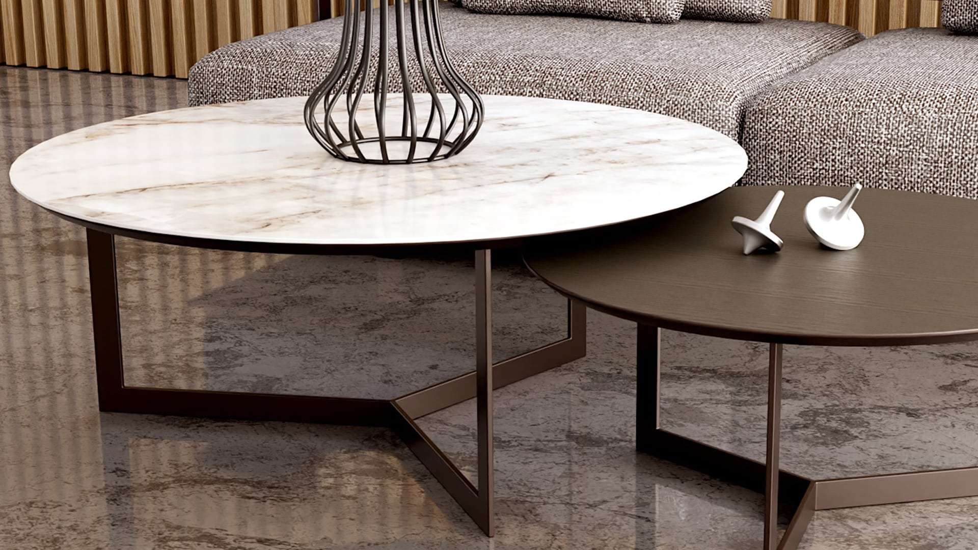 Ξύλο δρυς και κεραμική επιφάνεια σε ένα elegant σχέδιο που ταιριάζει σε κάθε χώρο. Δυο ανεξάρτητα τραπέζια σαλονιού που μπορούν να είναι μαζί η ξεχωριστά. Ευχρηστία, λειτουργικότητα και απαράμιλλη φινέτσα. Το τραπεζάκι το κατασκευάζουμε σε διαστάσεις, υλικά και συνδυασμούς χρωμάτων της επιλογής σας.