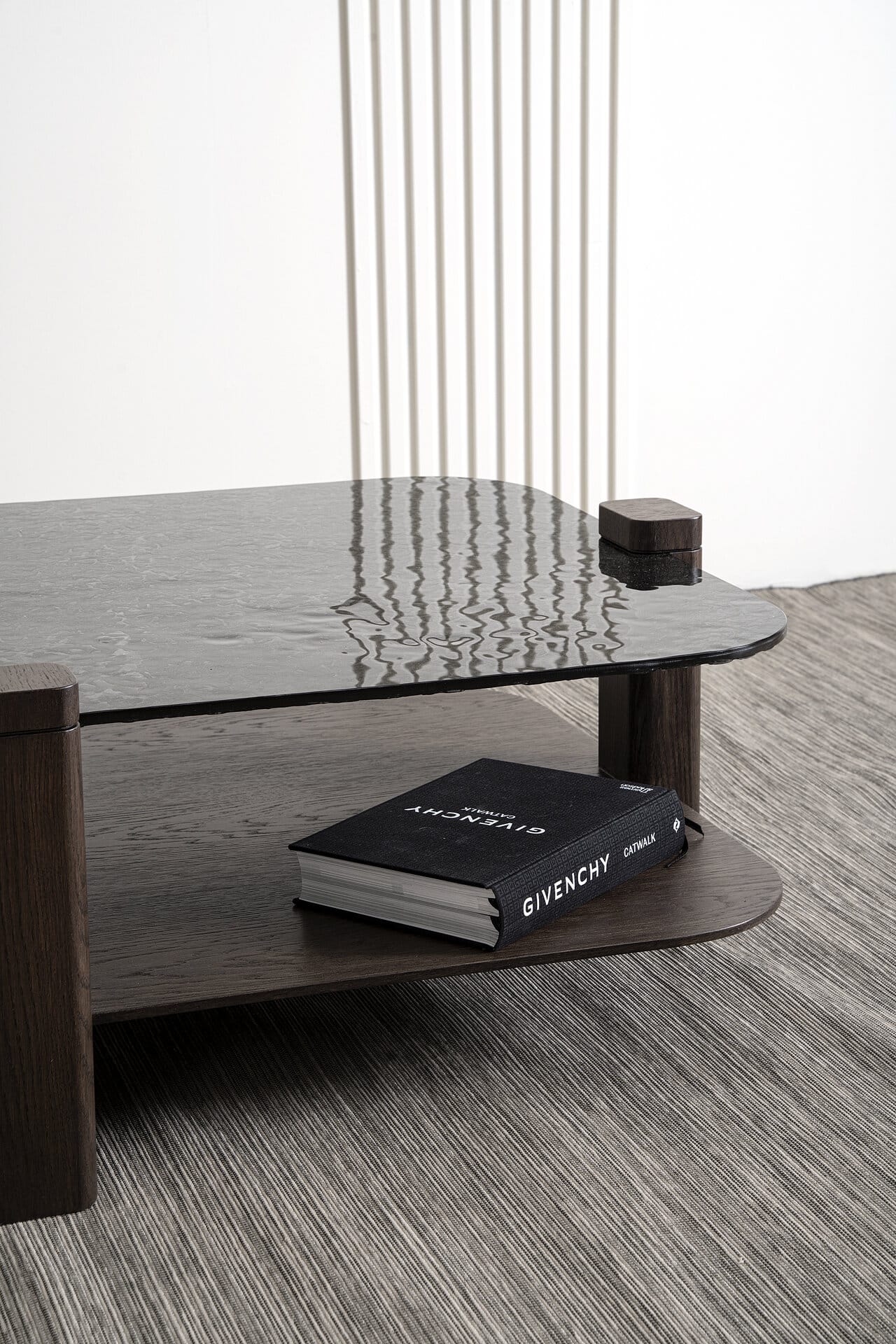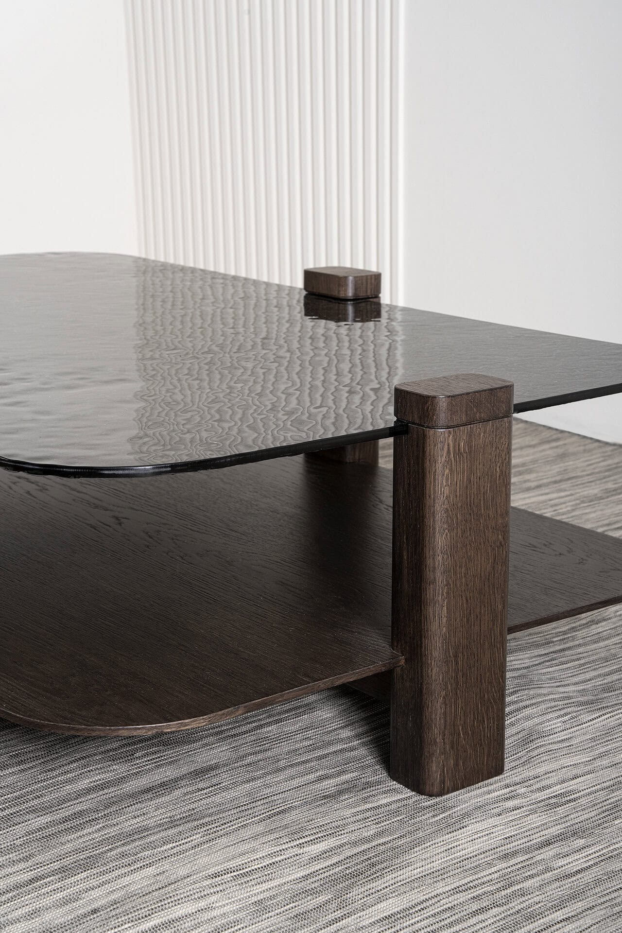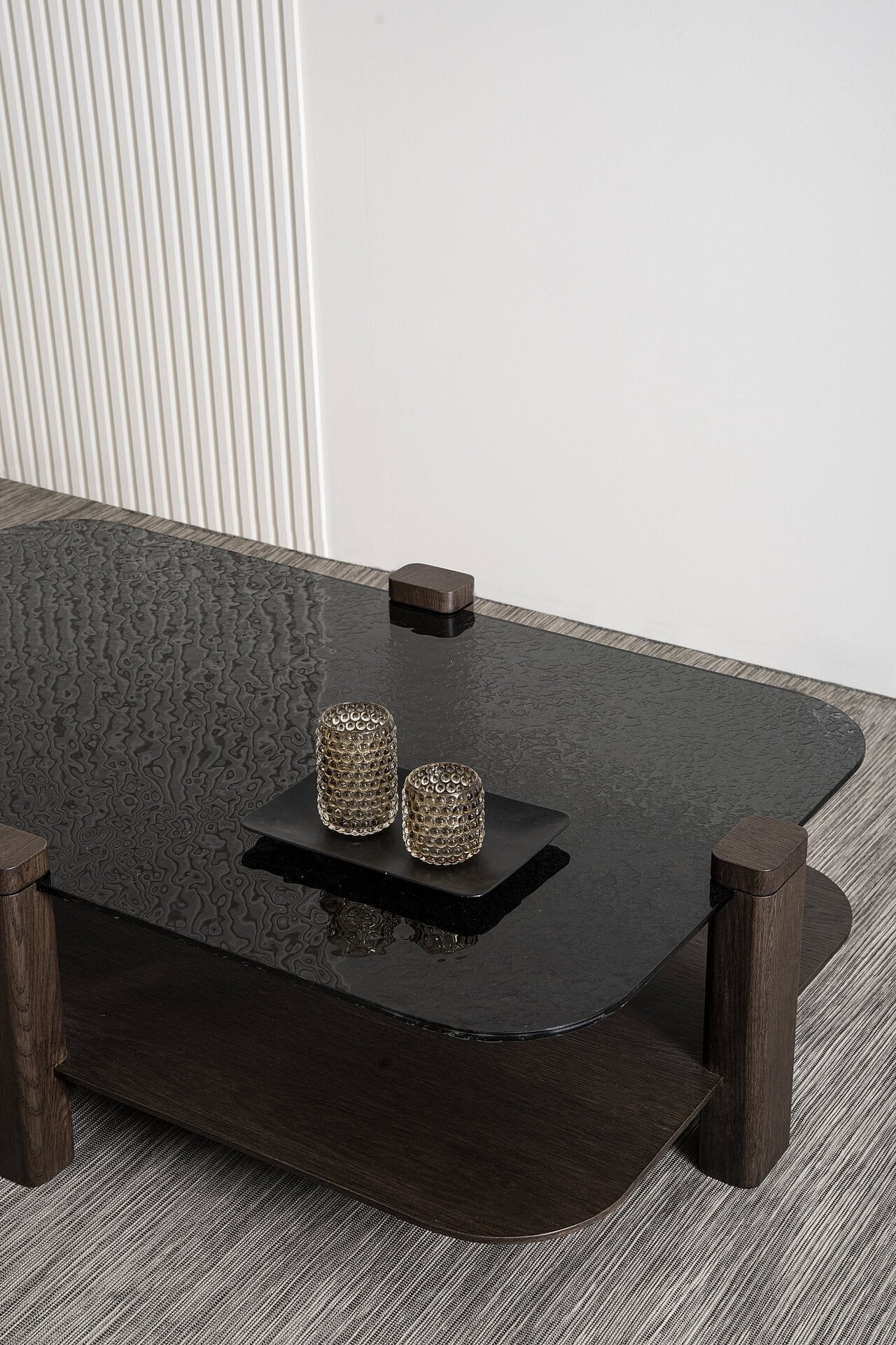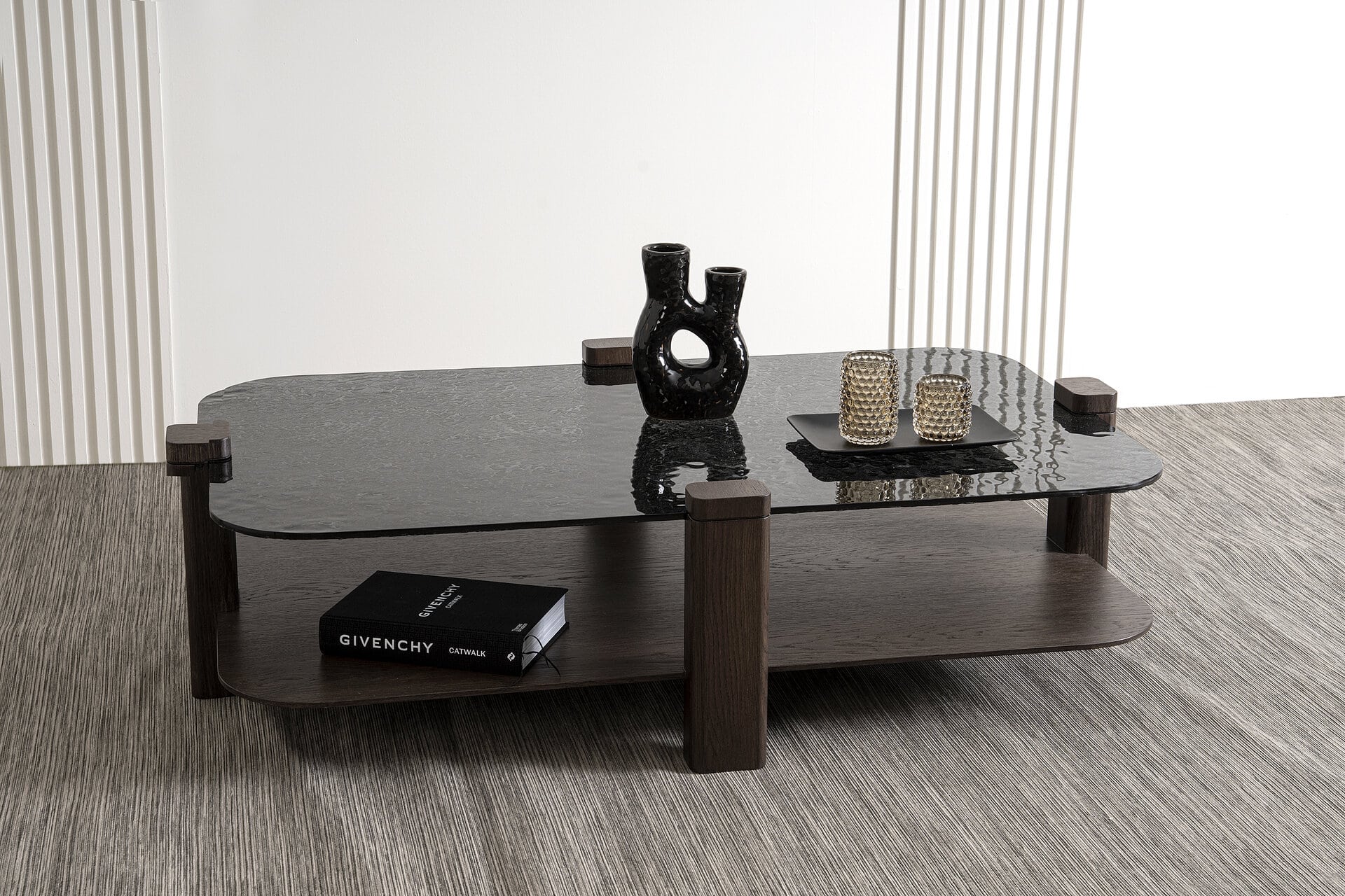Τραπέζι Σαλονιού Shine. Ελληνικής κατασκευής. Υλικά κατασκευής: Ξύλο δρυς σε συνδυασμό με καπάκι γυαλί φιμέ ή Fusing glass Διάσταση:138cm x 88cm x 38cm Δυνατότητα αλλαγών.
