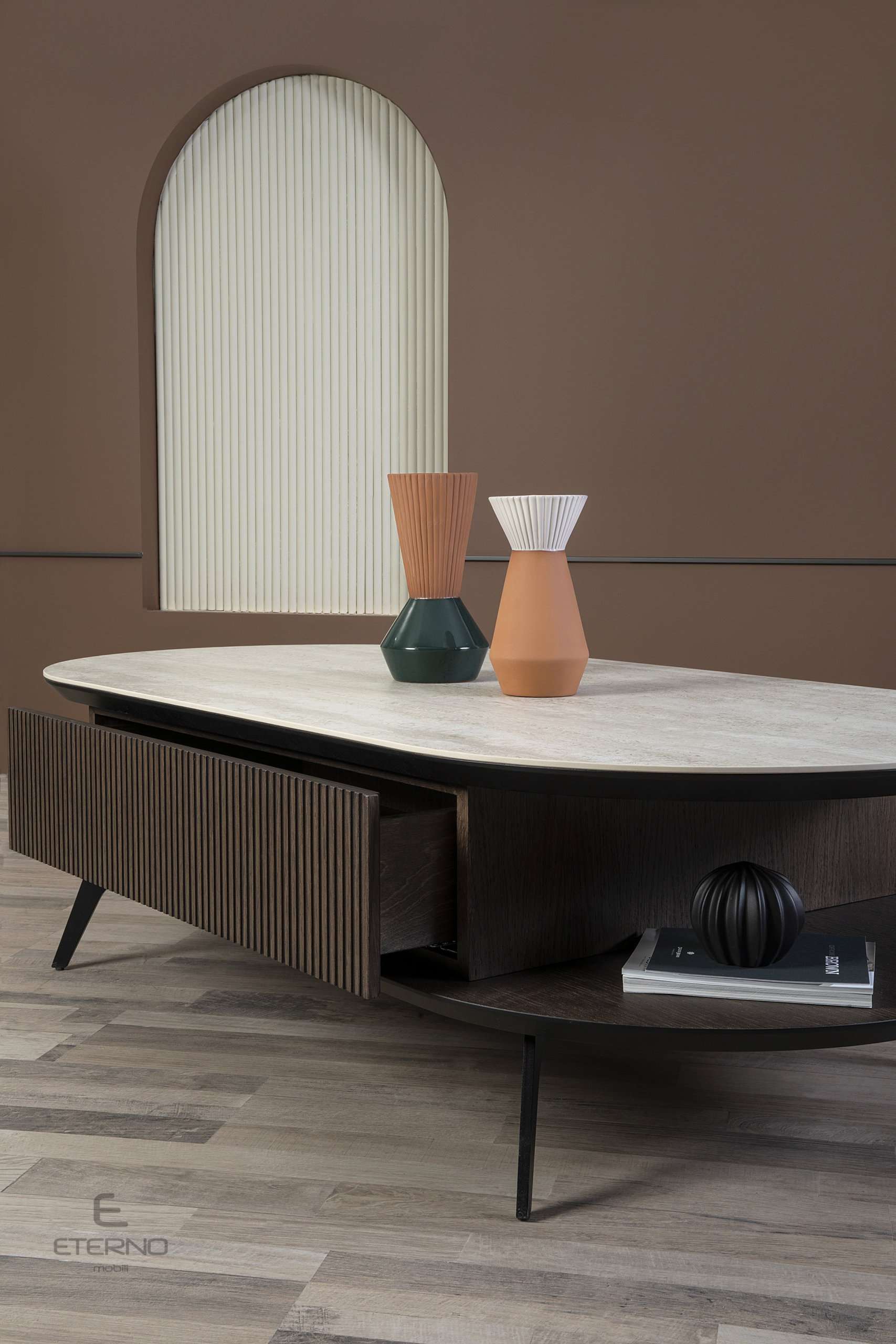 Η ασύμμετρη επιφάνεια του, οι καμπύλες γραμμές του και τα μεταλλικά πόδια χαρίζουν στο τραπεζάκι Smooth ceramic την κομψότητα και την αισθητική που του ταιριάζει.