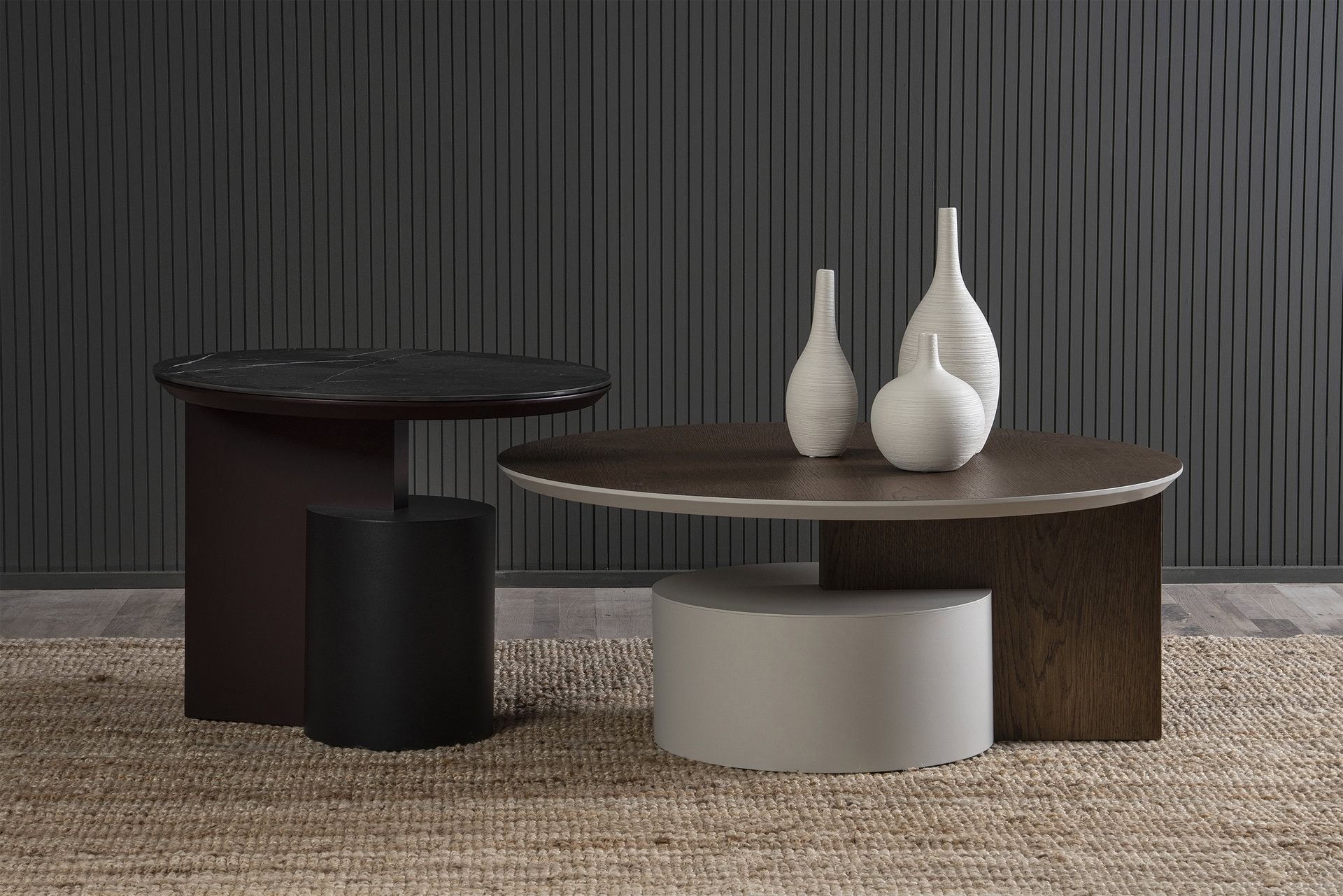 Τραπέζι Σαλονιού Solid. Ελληνικής κατασκευής. Ξύλο: Δρυς σε συνδυασμό με λάκα. Διάσταση: Φ90cm x 38cm *Extra κόστος το βοηθητικό τραπεζάκι solid Δυνατότητα αλλαγών.