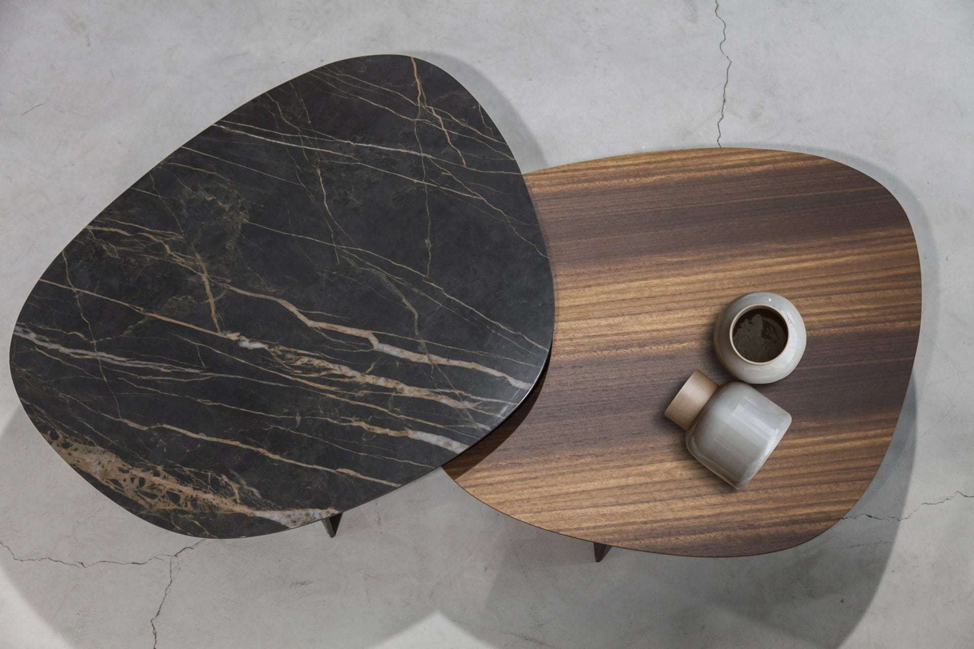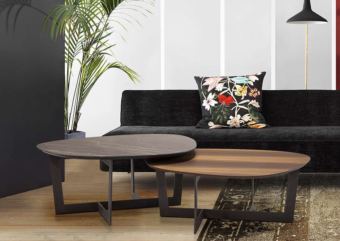 Τραπεζάκια σαλονιού σε ιδιαίτερο design, με κεραμικό και φυσικό ξύλο δρυός και μεταλλική μασίφ βάση. Στα χρώματα της επιλογής σας.
