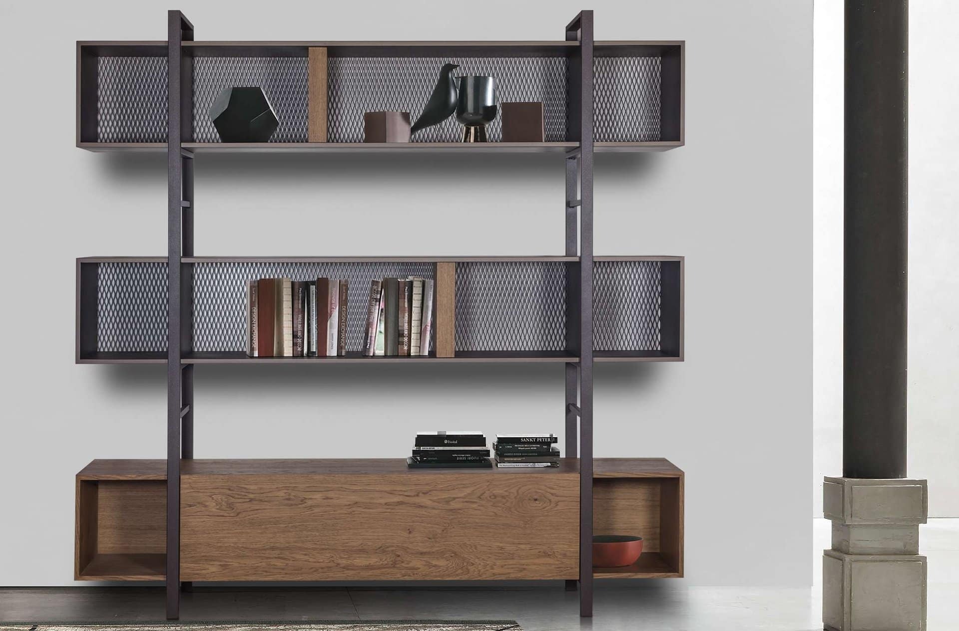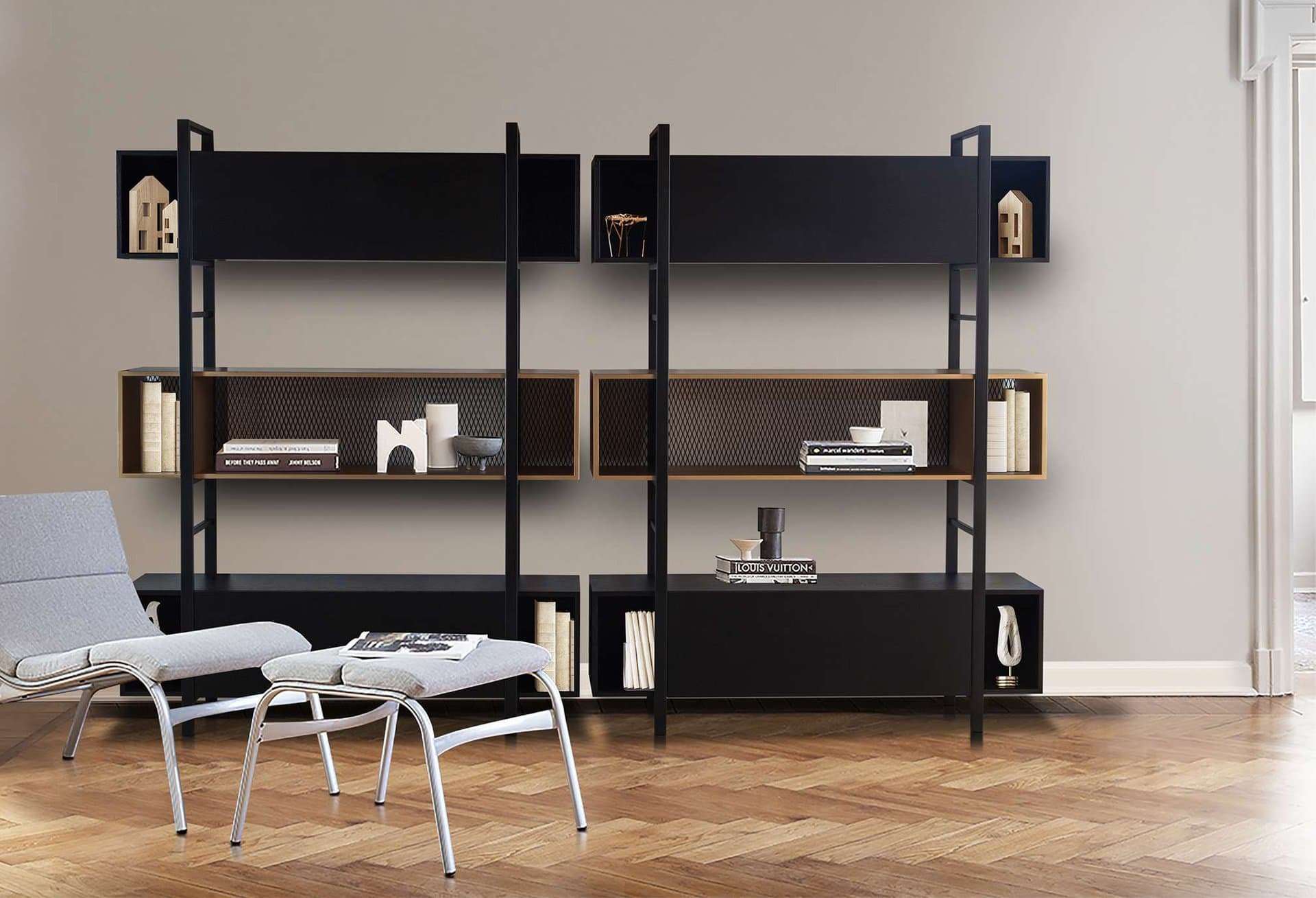Η βιβλιοθήκη που θα ενθουσιάσει. Φτιαγμένη από μέταλλο και ξύλο έτσι ώστε να δίνει την αίσθηση ισορροπίας και ελευθερίας. Κομψή και ταυτόχρονα έτοιμη να φιλοξενήσει πολλά βιβλία και διακοσμητικά αντικείμενα στα μεγάλα ράφια της. Από το σαλόνι μέχρι το γραφείο σας και στις διαστάσεις που επιθυμείτε.